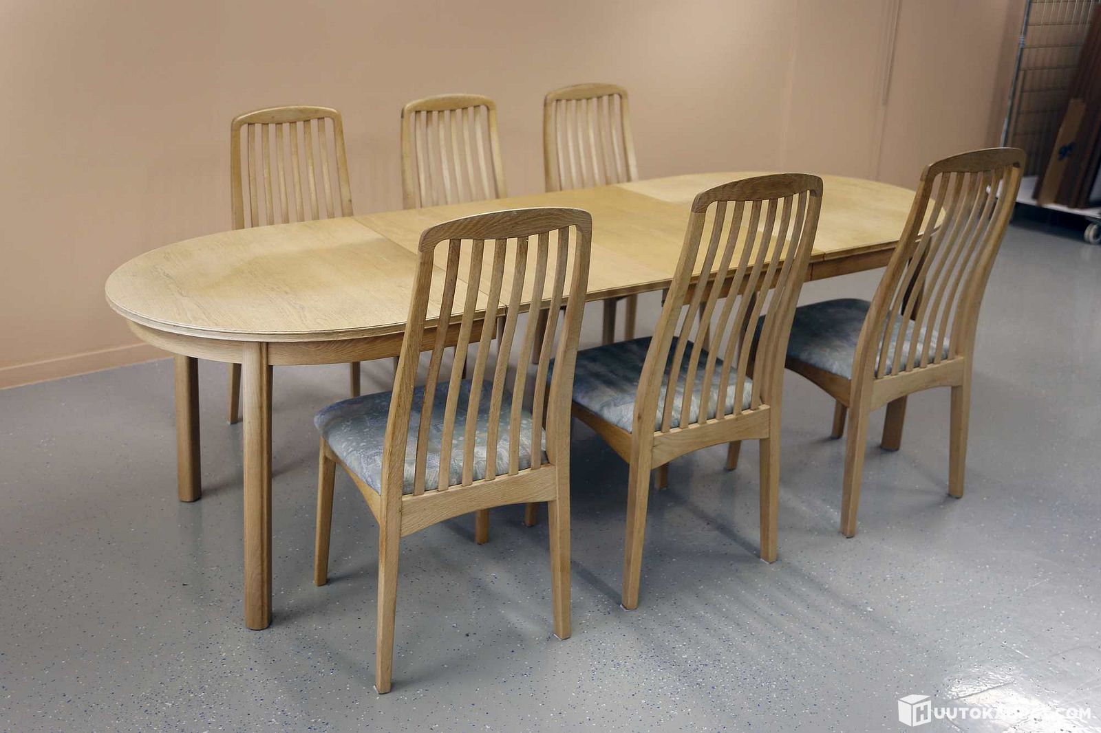Ruokailuryhmä (6 tuolia, jatkettava ruokapöytä). HKL9554, Hausjärvi
