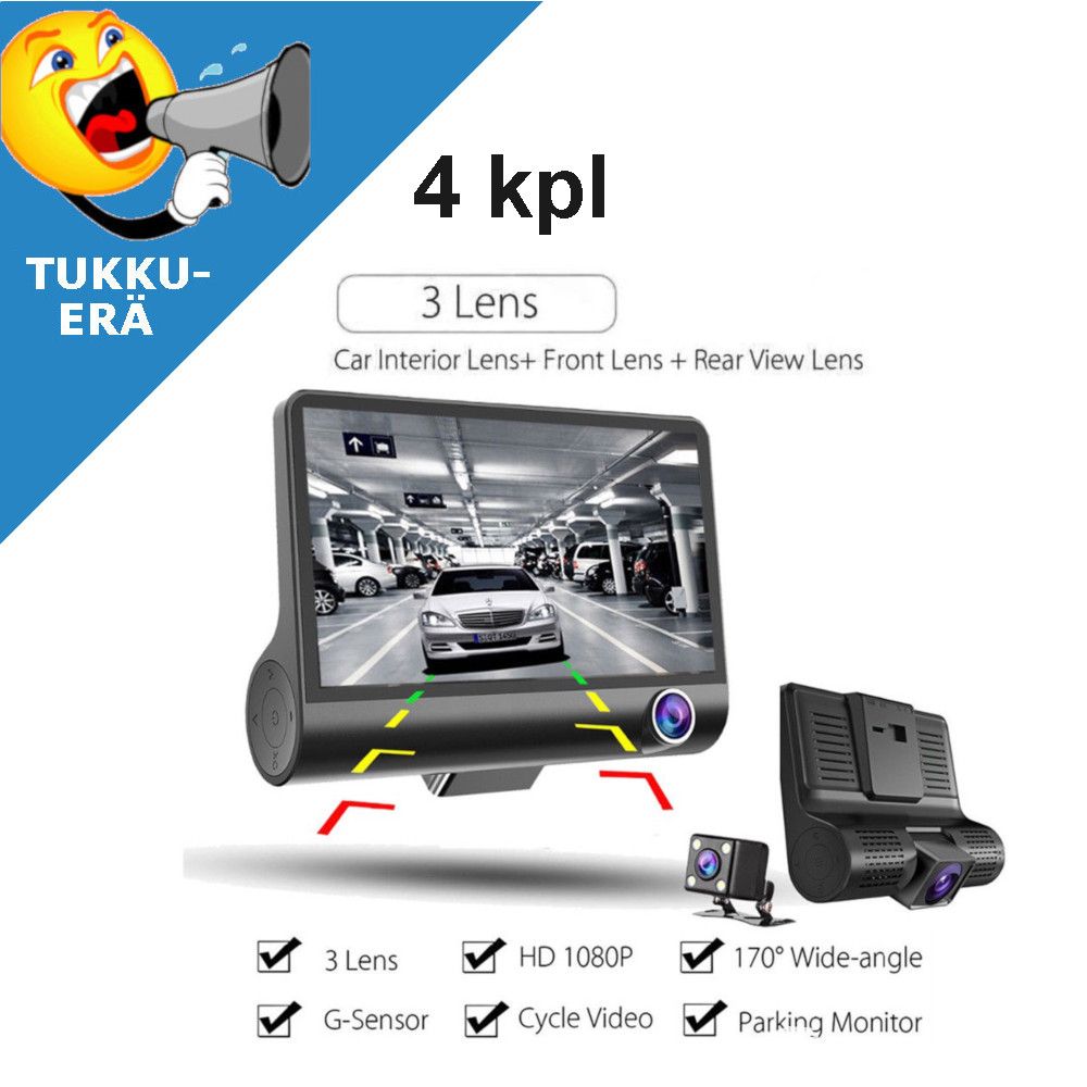 🚗TUKKUERÄ: 4 kpl 4.0” 3-linssinen Dash Cam / Autokamera HD 1080P, Hämeenlinna