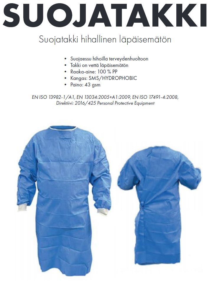 Poistoerä. Pitkähihallinen suojatakki,läpäisemätön, 5056 kpl, Espoo