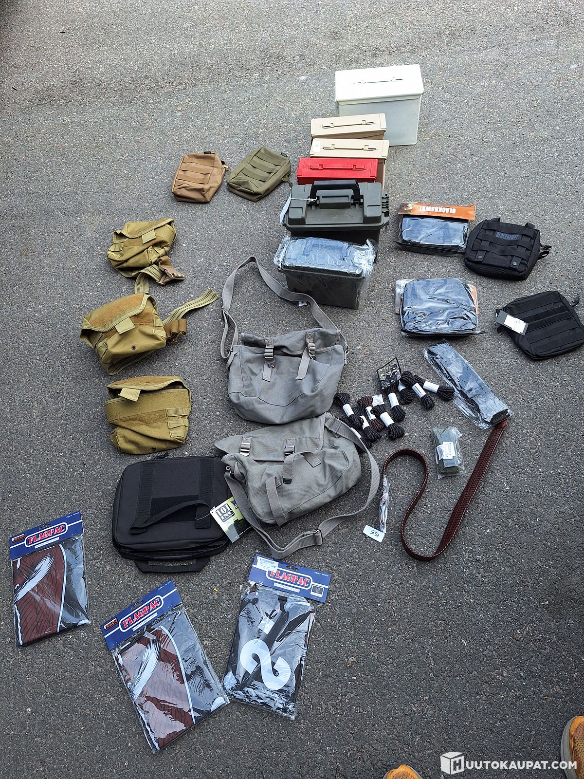Erä sekalaisia tavaroita (laukkuja, ammuslaatikoita, vöitä yms. Salainen agentti Oy konkurssipesä, Järvenpää