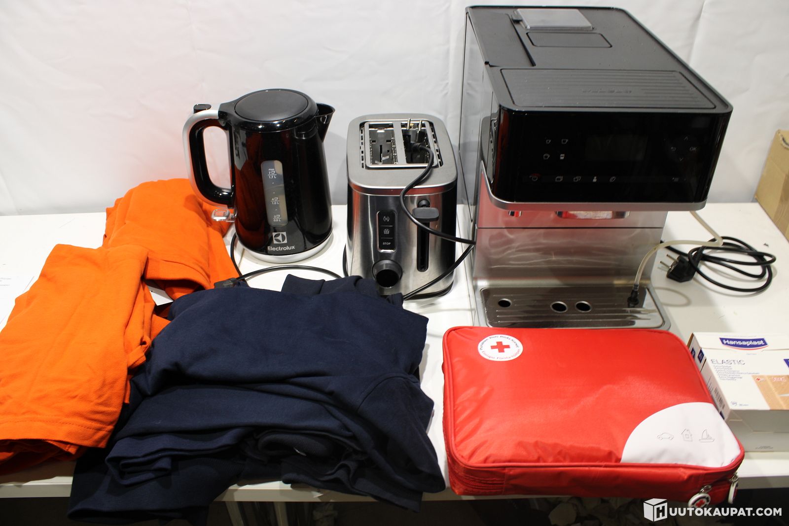 Kahvinkeitin, vedenkeitin, leivänpaahdin ja paitoja (V20) FlyMaas Oy konkurssipesä (3167078-7), Kirkkonummi