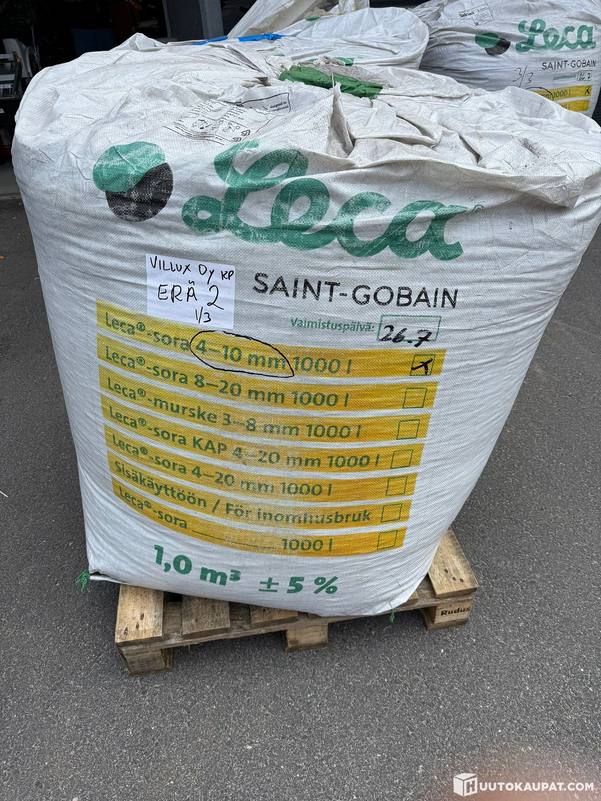 3 säkkiä Leca sora 4-10mm (erä 2) Villux Oy konkurssipesä 3243482-3, Espoo
