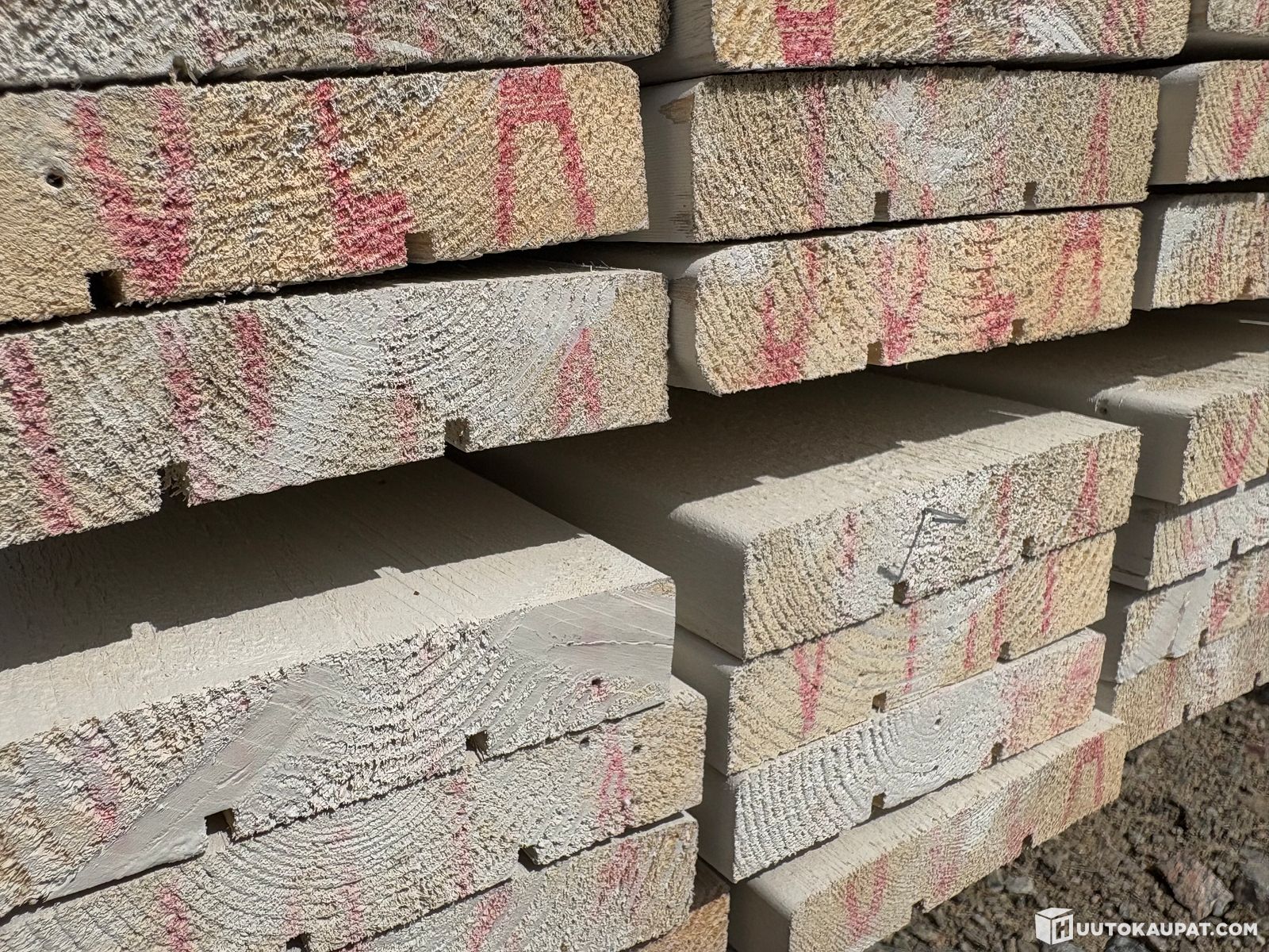 Nippu valkoista maalattua 20x95 vuorilautaa, Uurainen