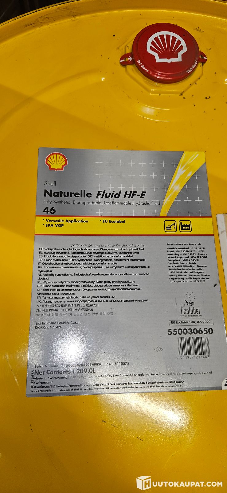 Avaamaton tynnyri 1kpl Hydrauliöljy Shell Naturelle Fluid HF-E 46, Vantaa