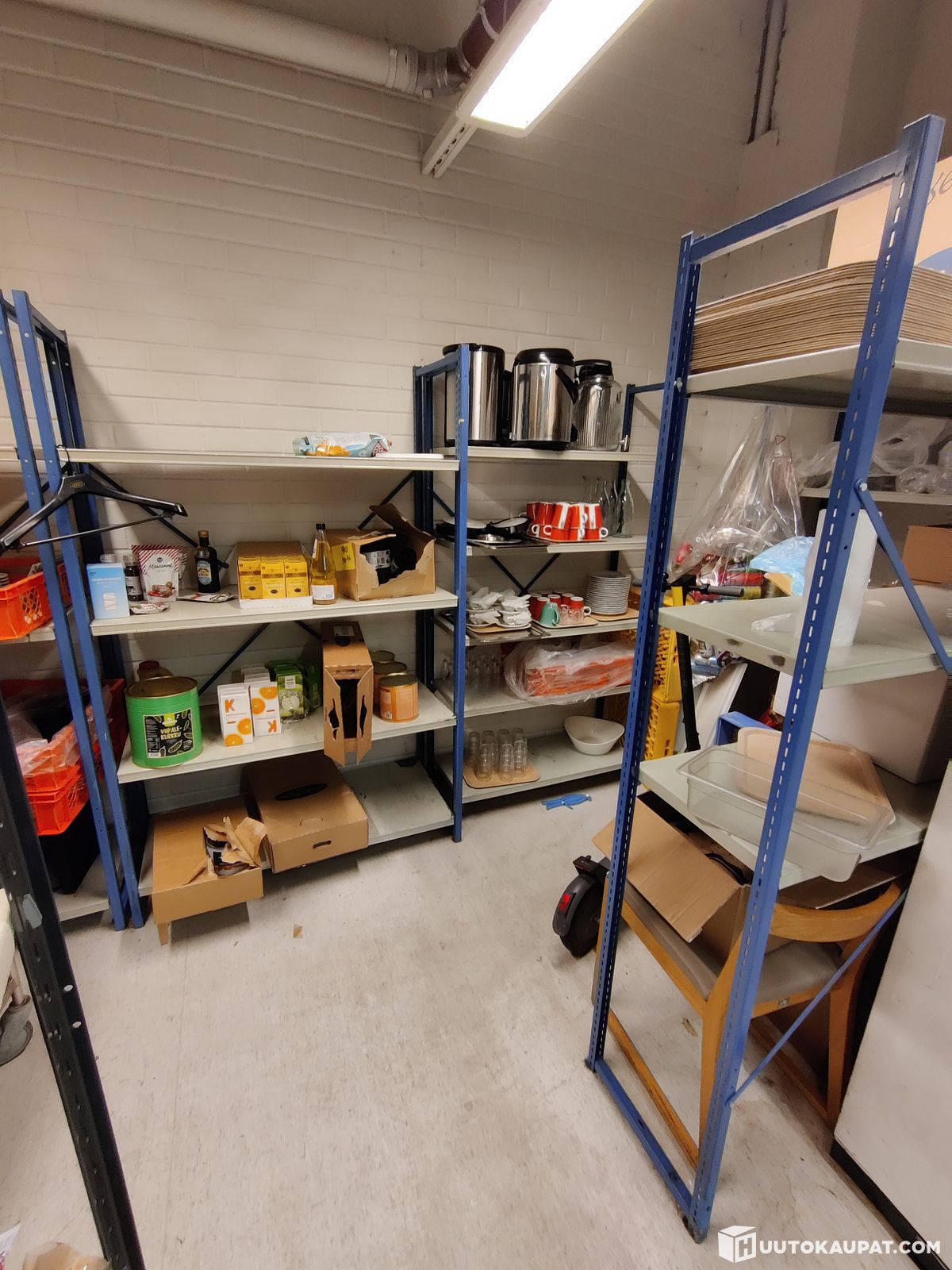 varaston metallihyllyt, jääkaappi, kaapit, mikro, Lahti