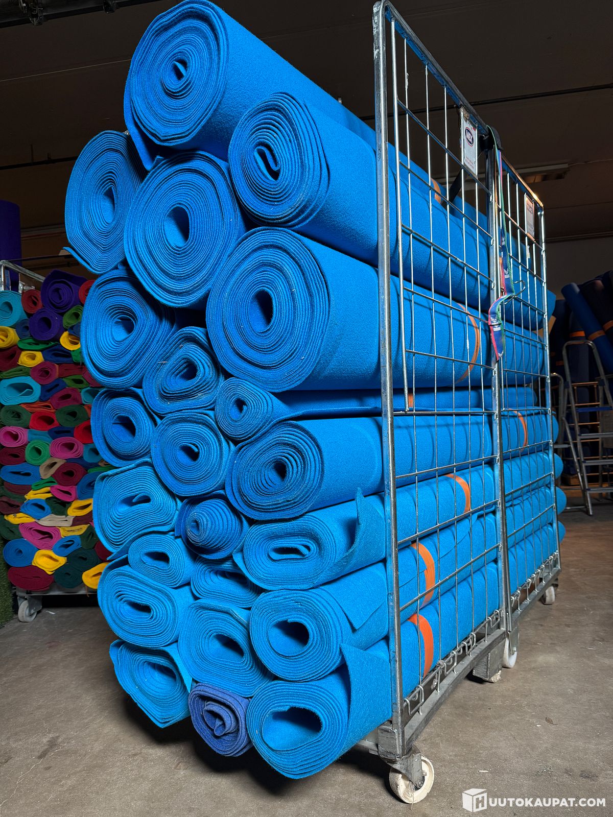 Megaerä 2 m leveää käytettyä paksua sinistä messumattoa tuplarullakollinen, Ylöjärvi