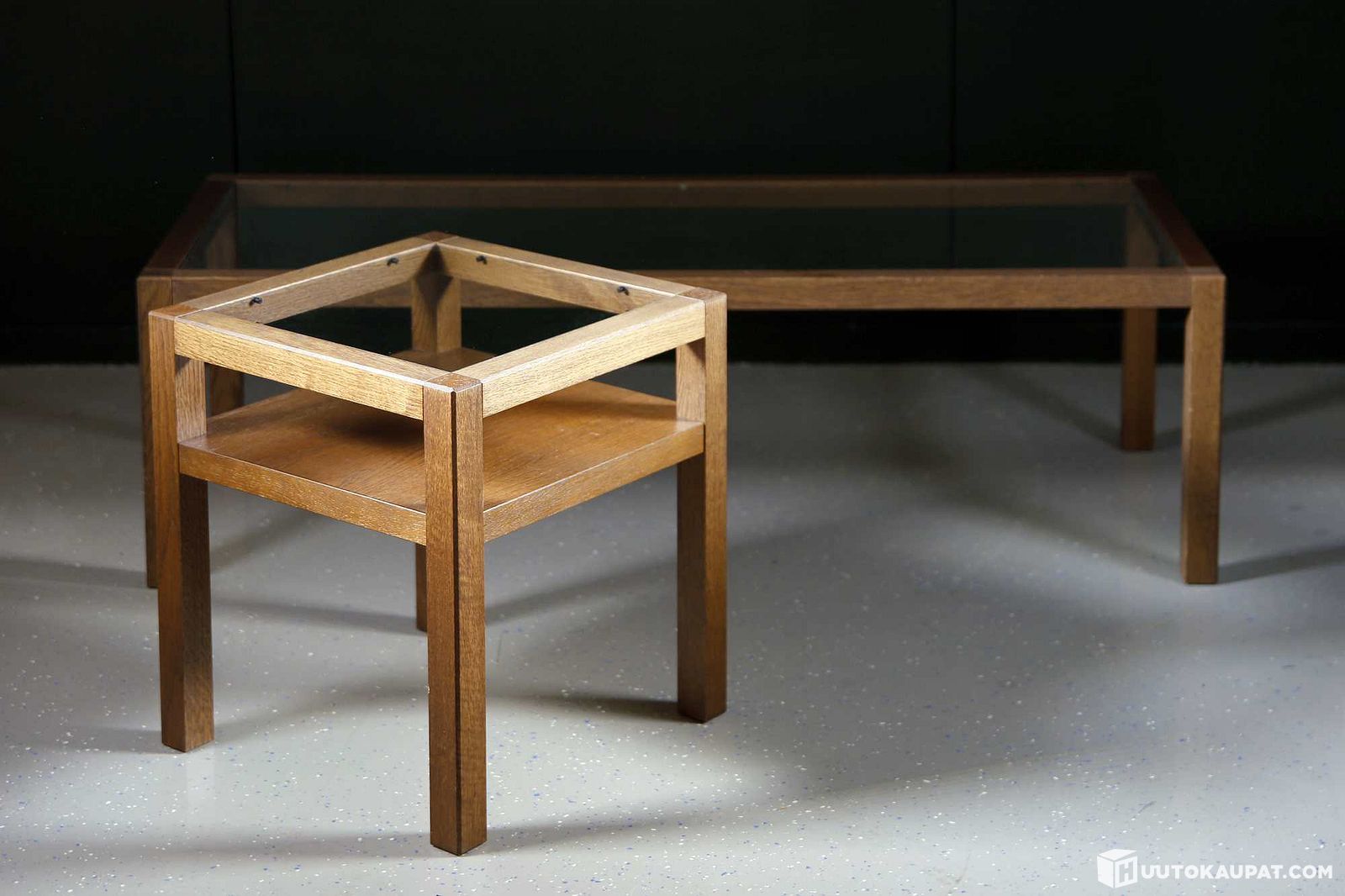 Massiivipuiset pöydät lasikansilla. HKL9579, Hausjärvi