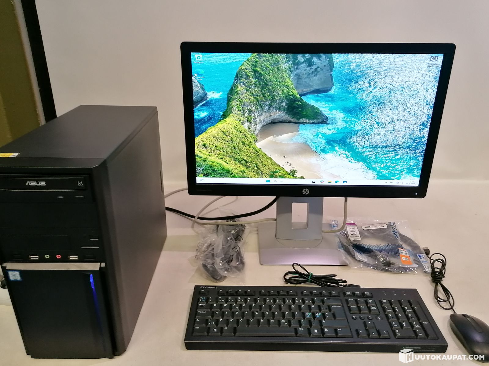 Alunperin yrityskäyttöön kasattu MT mallinen pöytäkone - Win 11 Pro + HP yritysnäyttö, näppäimistö, hiiri ja muuta, Riihimäki