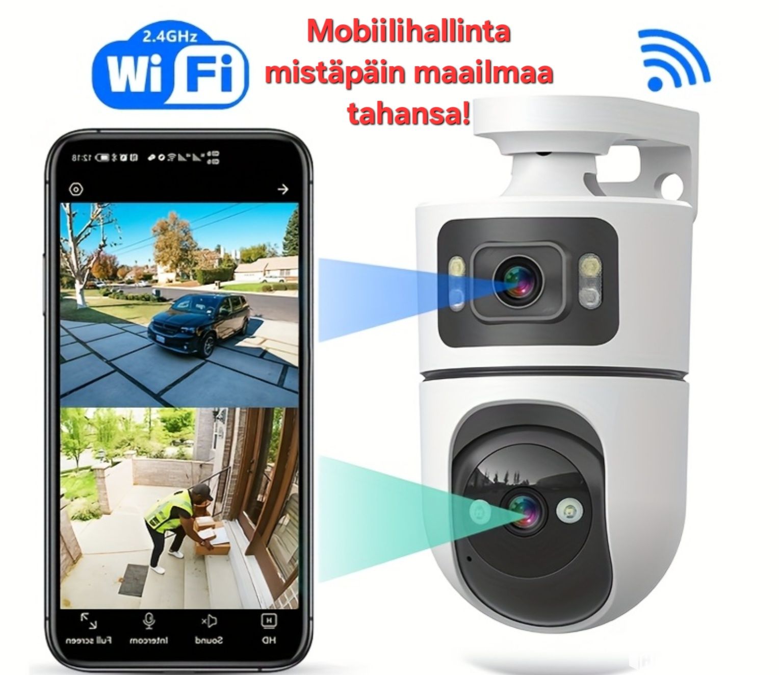 Uusi kaksoiskameran langaton valvontakamera etäohjauksella, livekuvalla ja liikkeenseurannalla, Tampere