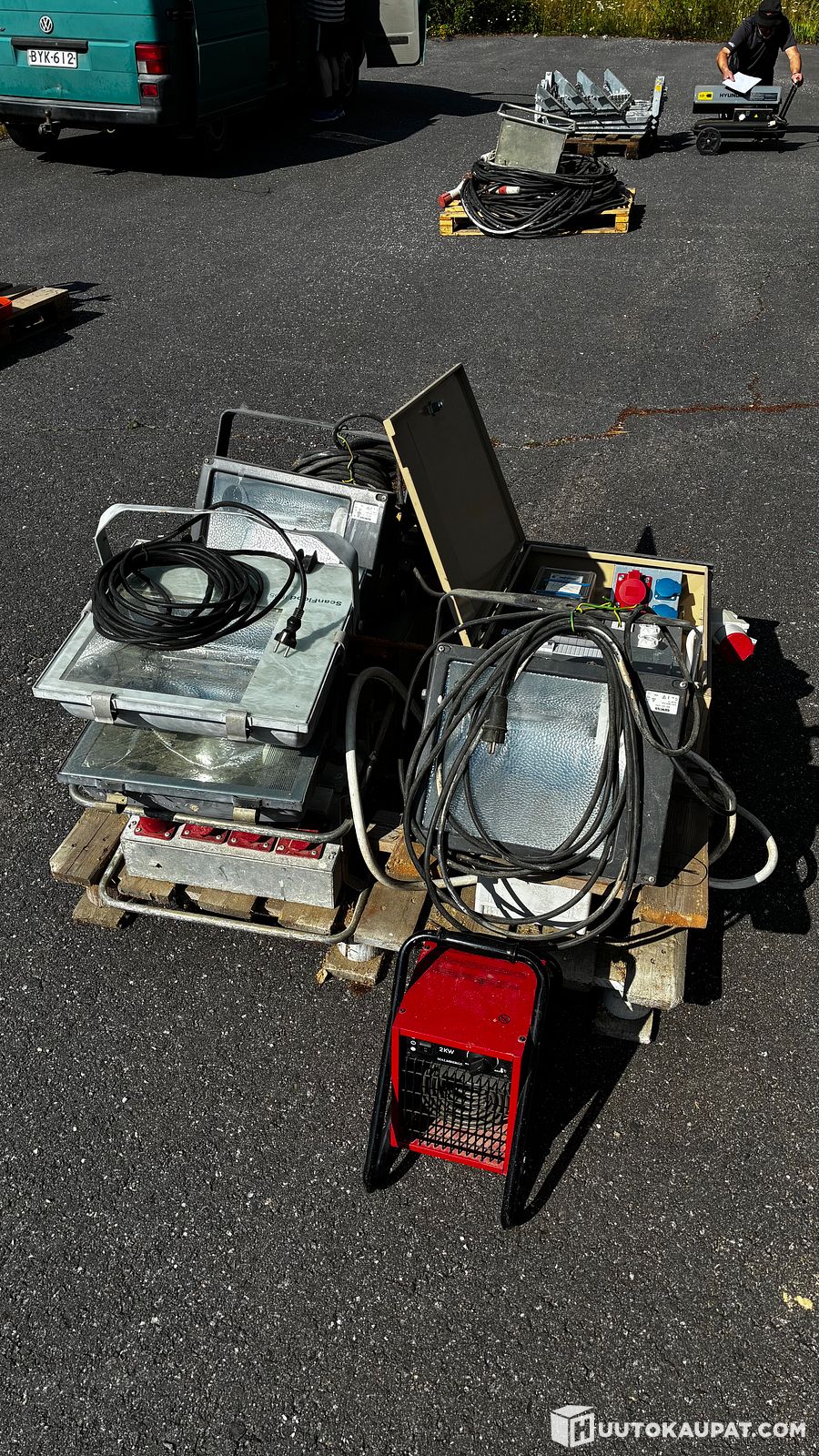 Työmaakeskukset, sähköpuhallin ja lamppuja, Kaustinen