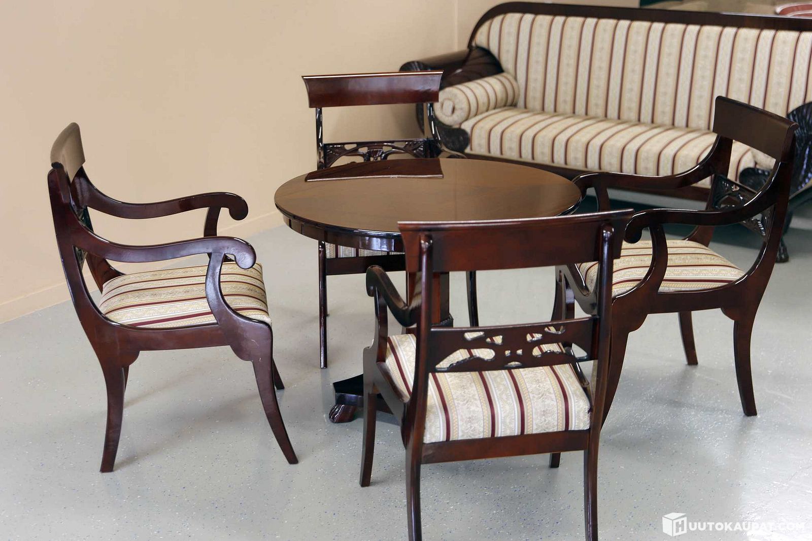 Biedermeier pöytä ja käsinojatuolit. HKL9722, Hausjärvi