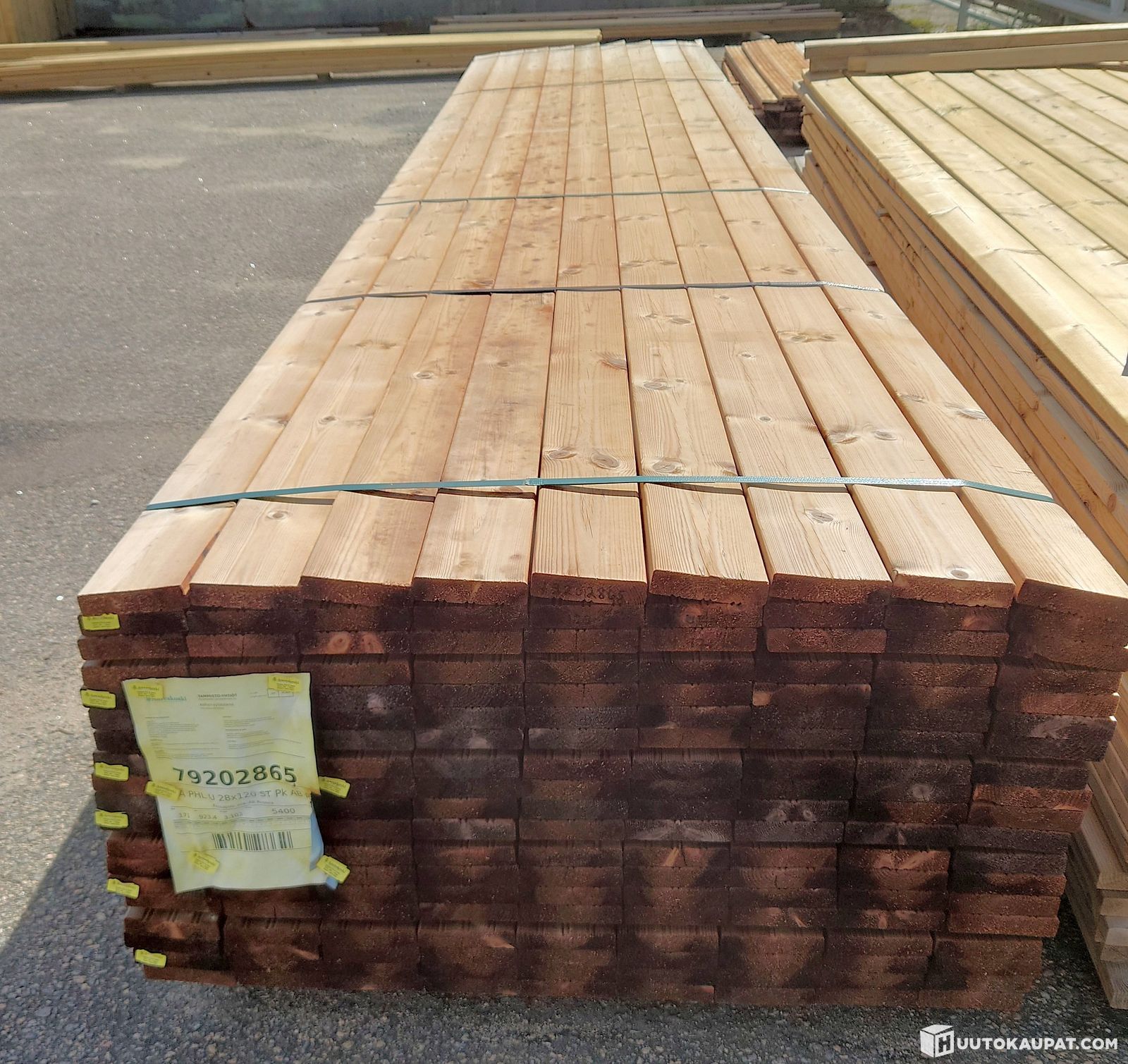 5,4 m pitkiä 28x120 ruskeakyllästettyjä uritettuja I-laadun terassilautoja 45 kpl - 241,5 m, Laitila