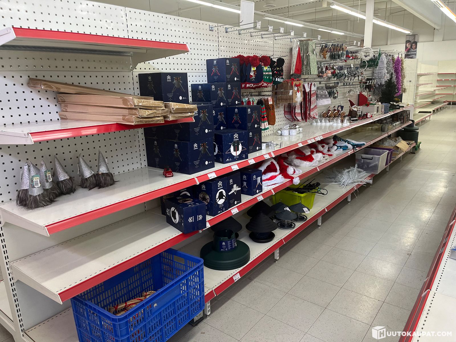 2 PUOLEISTA MYYMÄLÄHYLLYÄ + KORISTEITA YM, Akaa