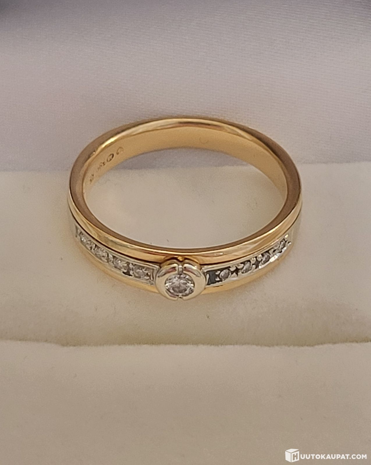 14K 585 Kultainen timanttisormus, 1x0,08ct, 8x0,01ct, Isokyrö