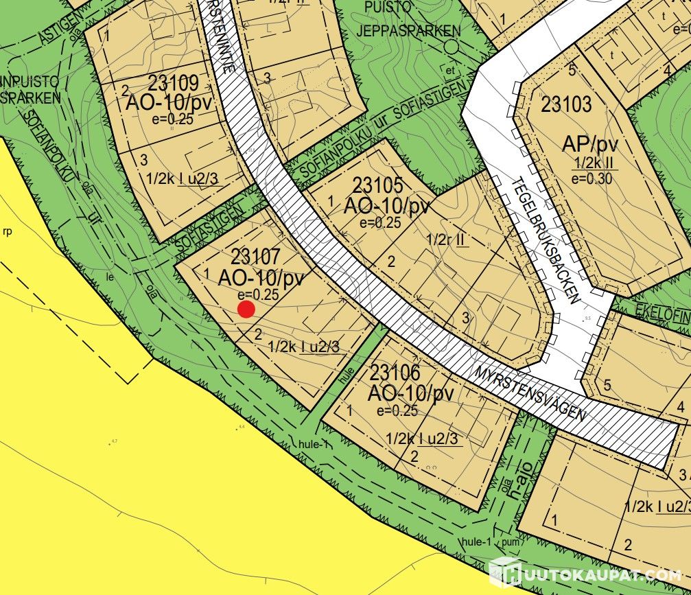 Omakotitalotontti, Söderkullan kartanon asuinalue / Egnahemshustomt, Söderkulla gård bostadsområde, K23107T1, Myrstenintie 12, 950 m2, 215 k-m2, Sipoo