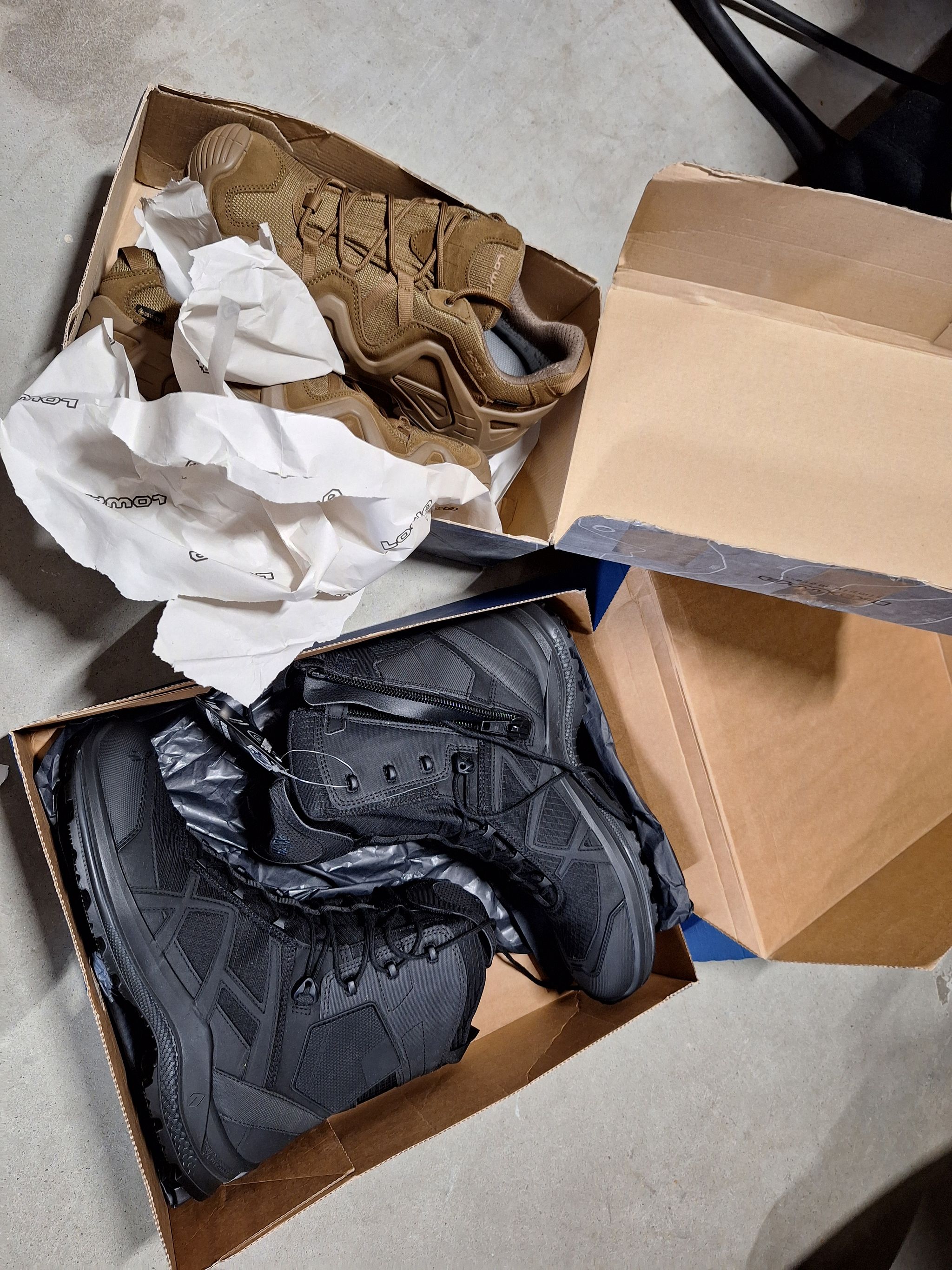 1kpl Haixin ja 1kpl Lowan kengät (koko 44,5 ja 45). Salainen agentti Oy konkurssipesä, Tuusula
