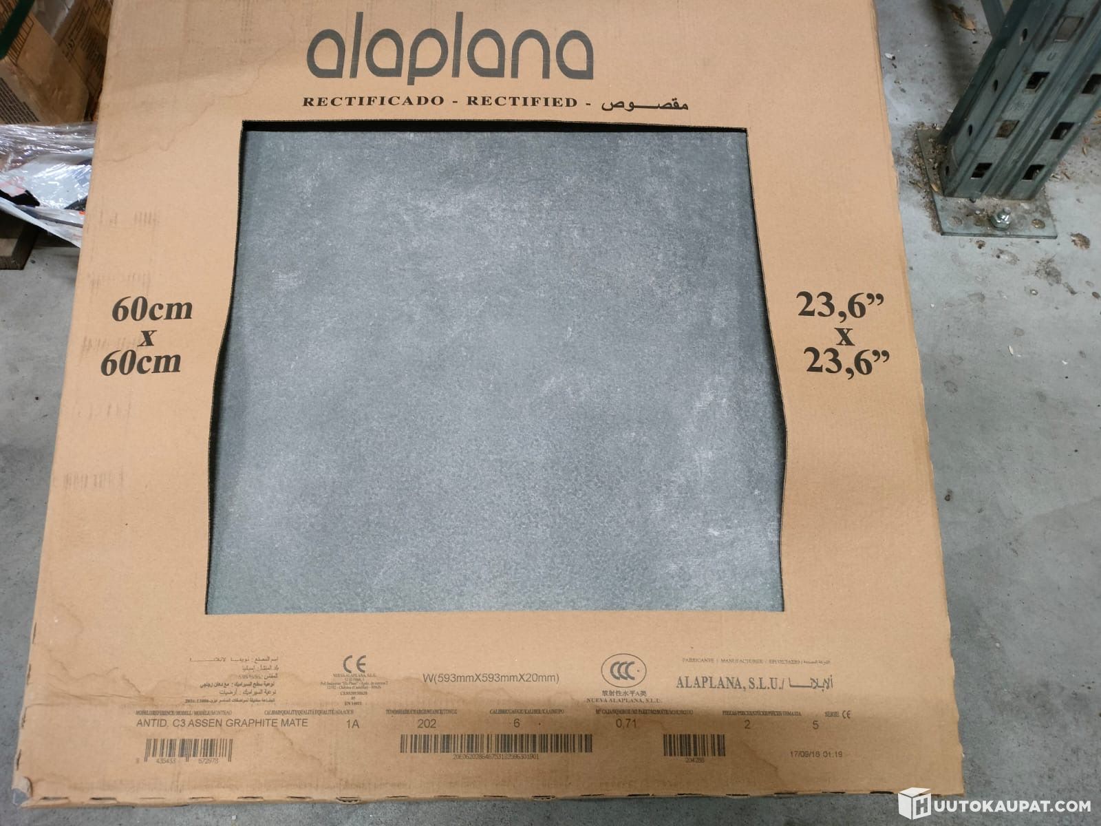 17m2 erä LATTIALAATTA ASSEN 60X60 20 MM PAKKASENKESTÄVÄ LATTIA+ SEINÄ GRAFIITTI 502143950, Keuruu