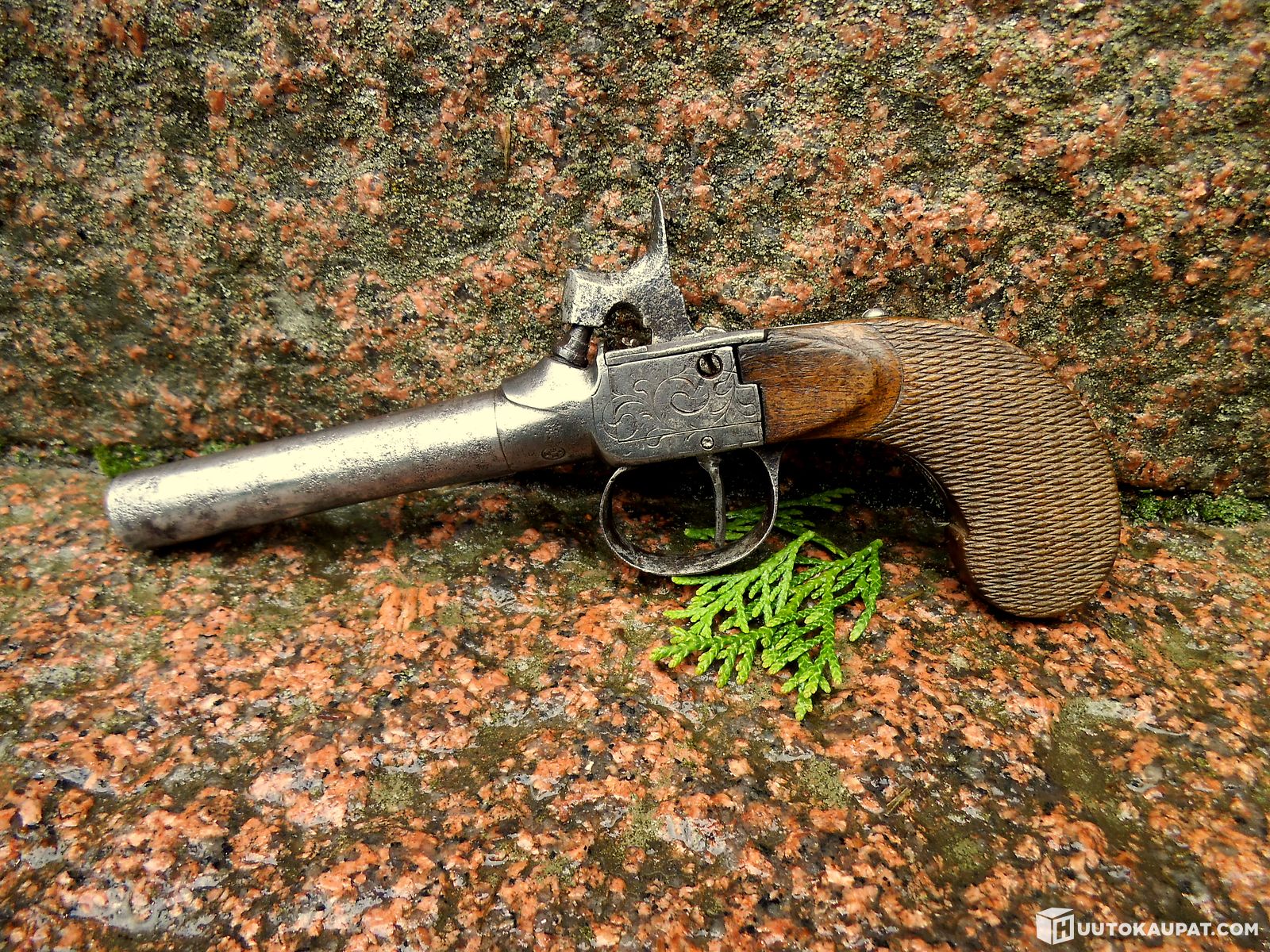 Hieno nallilukkopistooli lupavapaa mustaruuti pistooli ase 1800-luku !!!!, Vehmaa