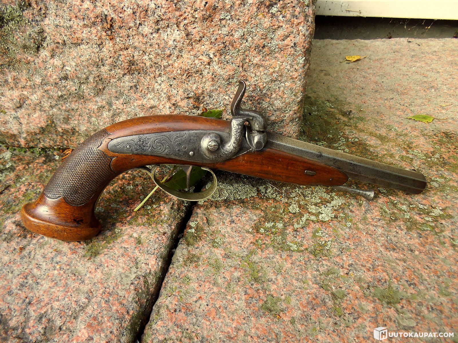 Upea nallilukkopistooli ase suustaladattava upseeri pistooli 1800-luku !!, Vehmaa