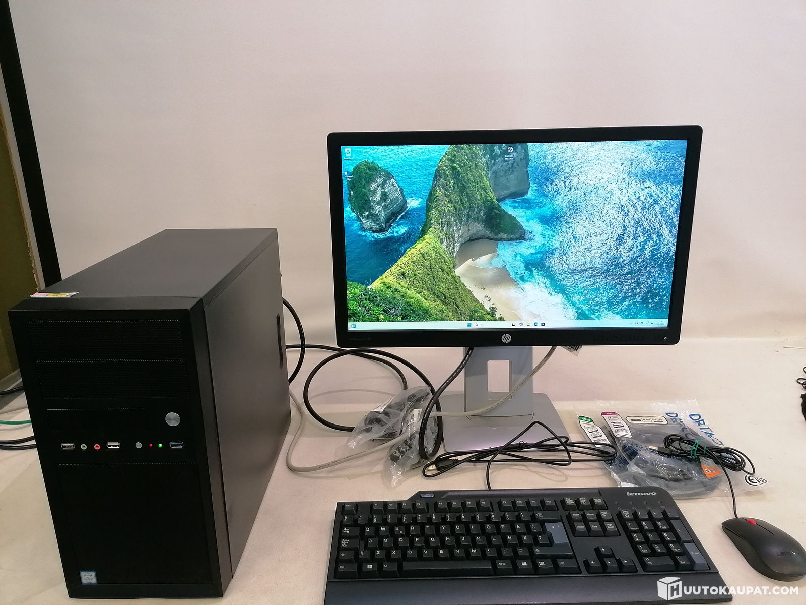 Alunperin yrityskäyttöön kasattu MT mallinen pöytäkone - Win 11 Pro + HP yritysnäyttö, näppäimistö, hiiri ja muuta, Riihimäki