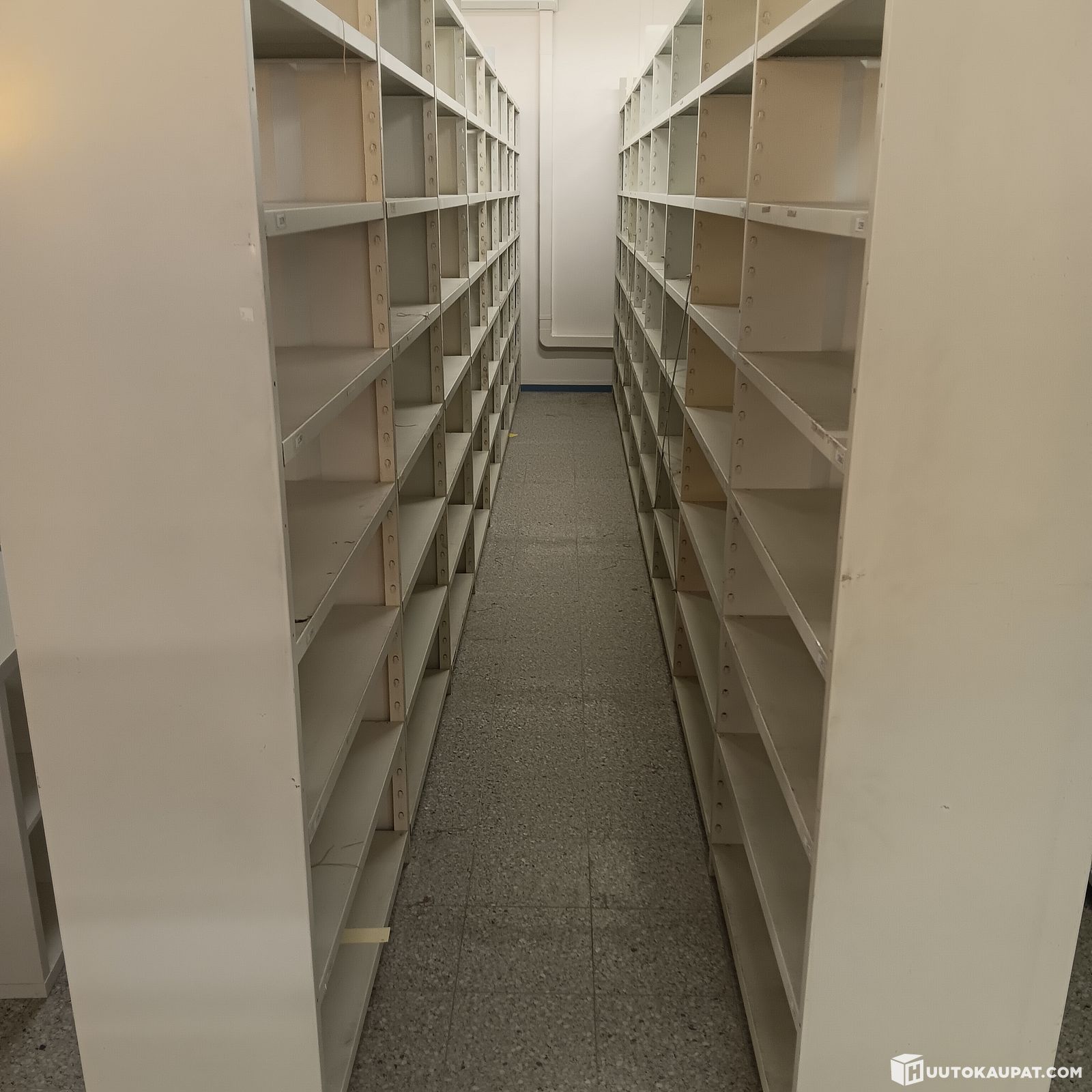 Metallista tukevaa varastohyllyä umpipäädyin - pientavarahylly : 128 hyllymetriä (HYLLY 6), Vihti