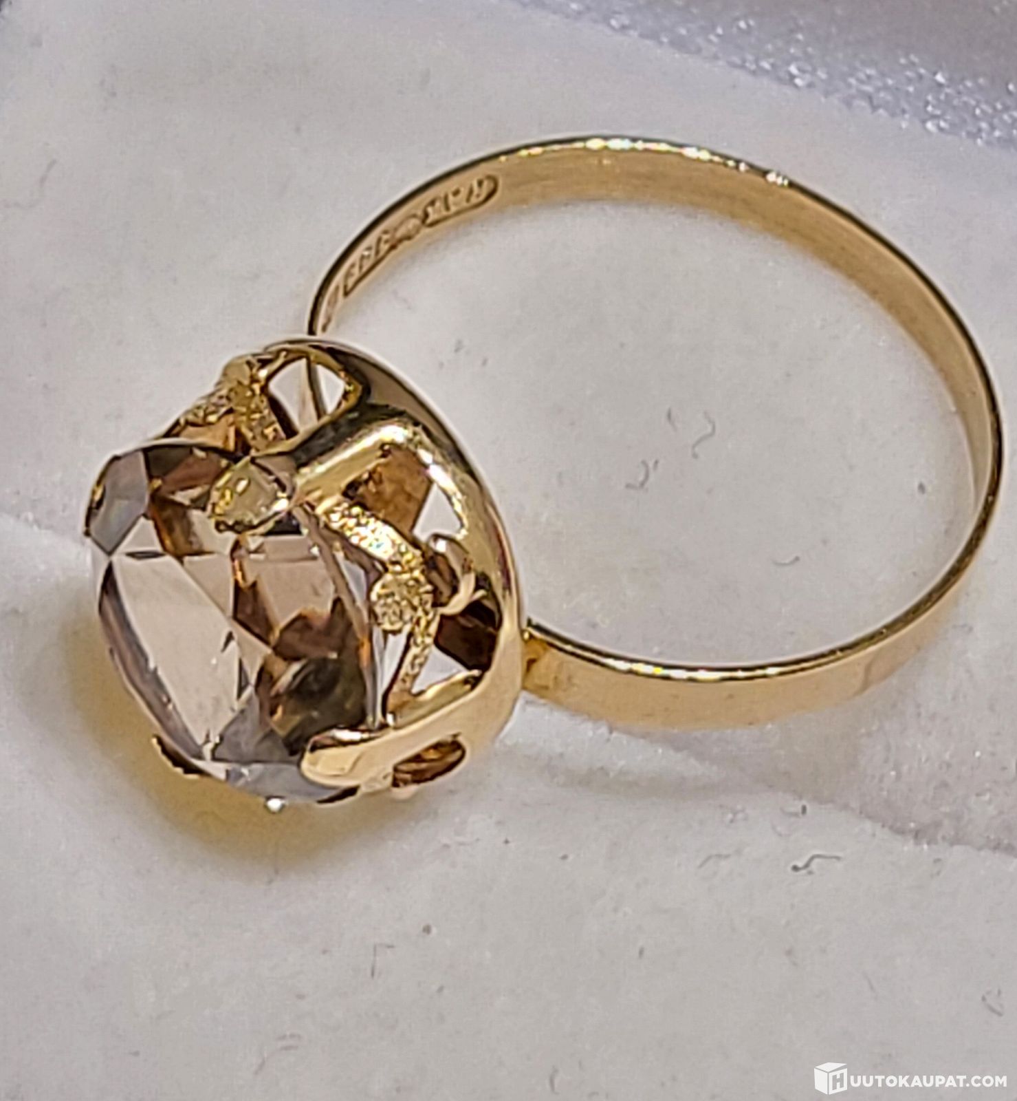 14K 585 Kultainen sormus - pyöreä savukvartsi-kivi, Seinäjoki