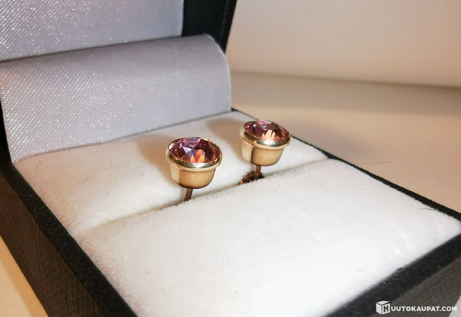 14K 585 Kultaiset korvakorut - 2 punaista kiveä, Isokyrö