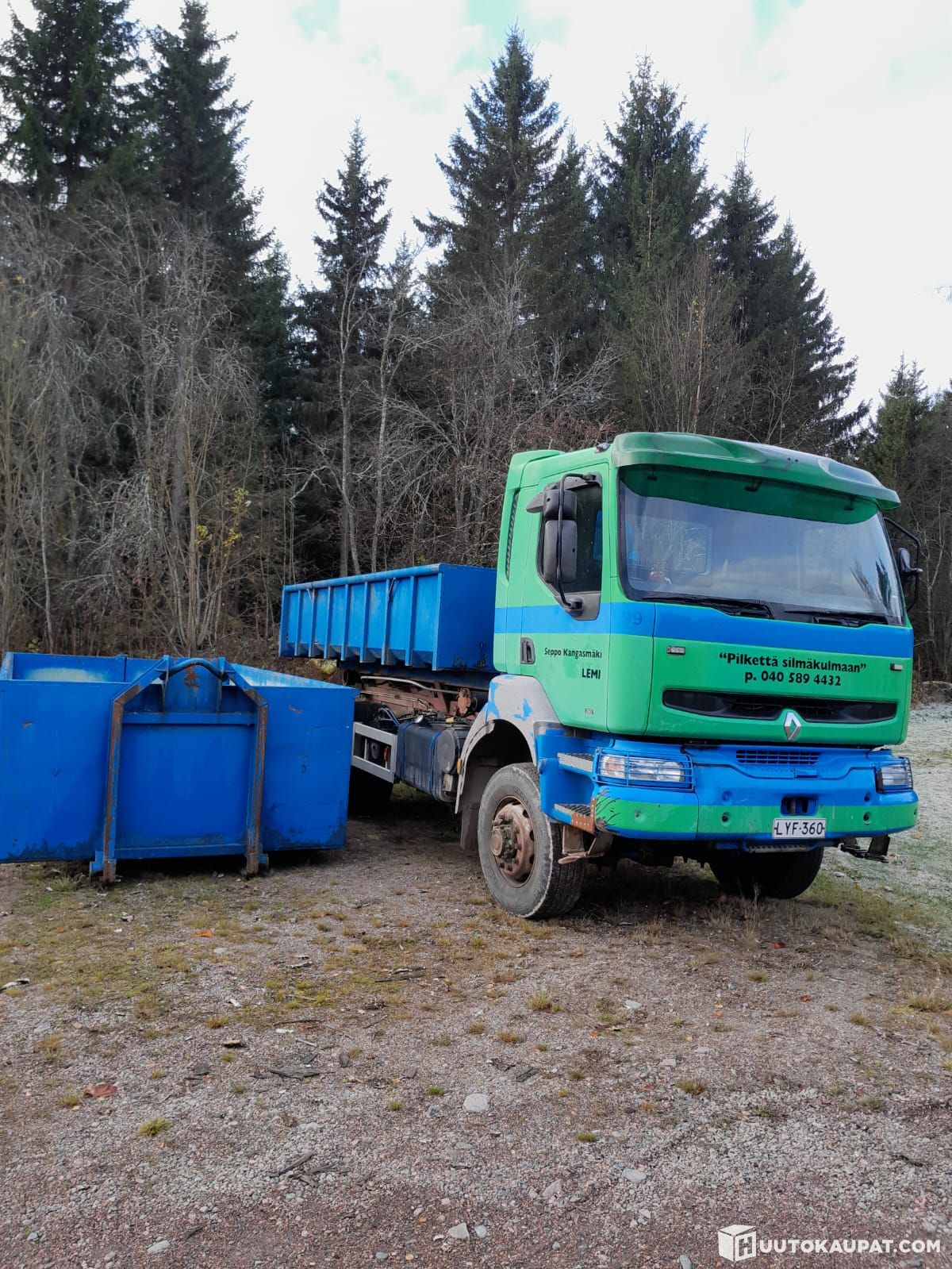 Renault kerax 4x4 vaijeri vaihtolava kuorma-auto. Mukaan 3kpl lavoja! Kaikki lavat 5m pitkiä. 10m3 halko lava jonka saa jaettua väliseinällä kahteen osaan, 15m3 halko/roska lava, ja 7m3 soralava. Yhteyden otot ja lisätietoja kohteesta. Seppo Kangasmäki p:040 5894432
