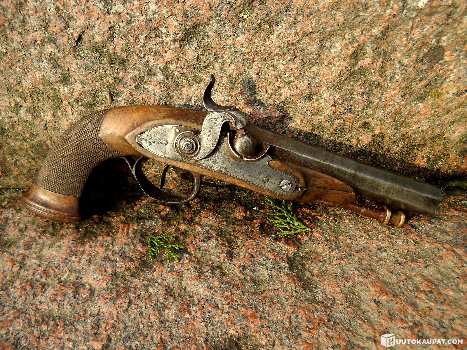 Hieno Nallilukkopistooli antiikkiase pistooli suustaladattava ase 1800-luku !!, Vehmaa