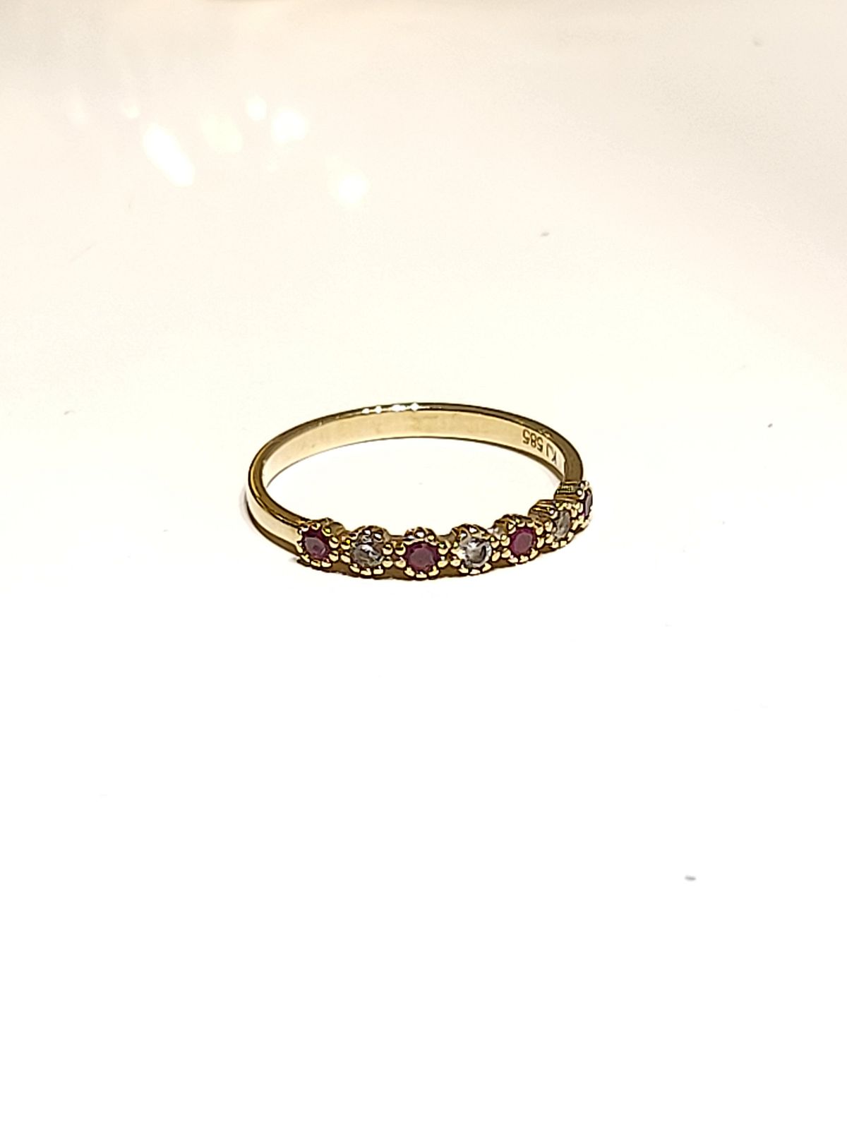 14K 585 Kultainen rubiinisormus, 4 rubiinia, 3 kirkasta kiveä