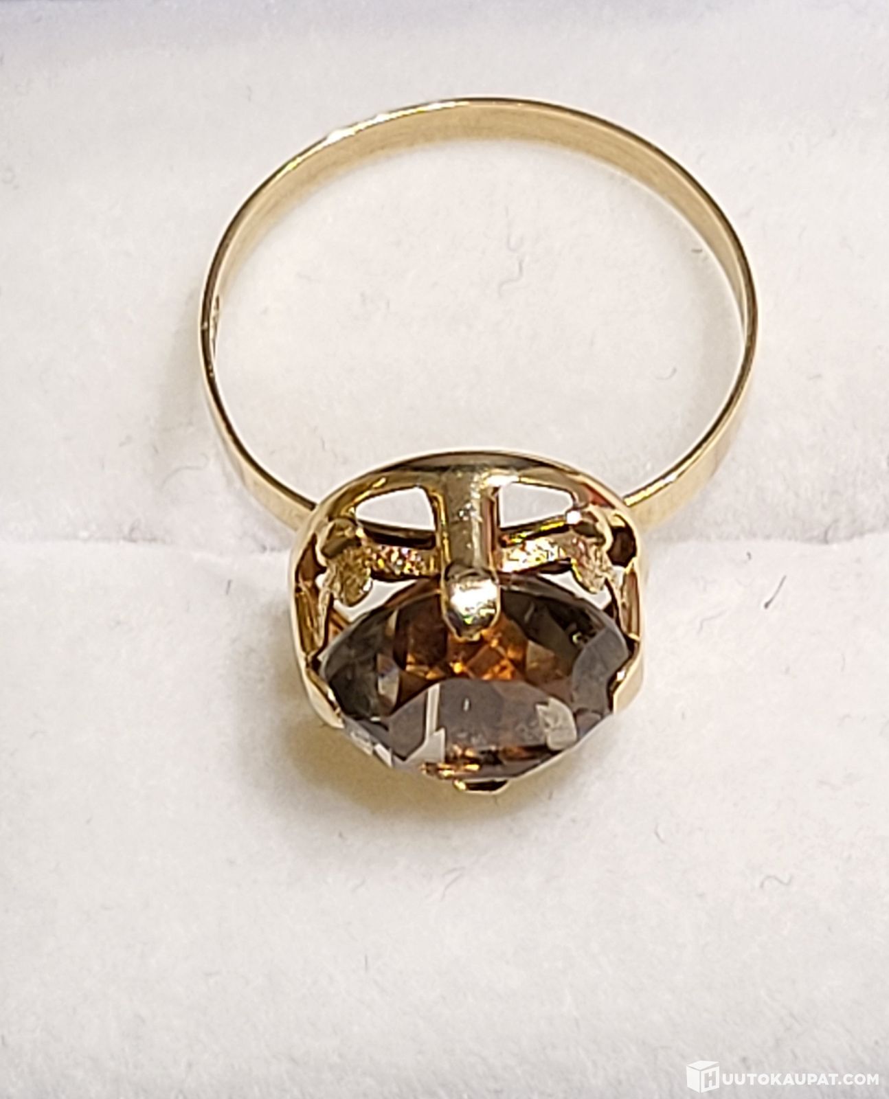 14K 585 Kultainen sormus - pyöreä savukvartsi-kivi, Riihimäki