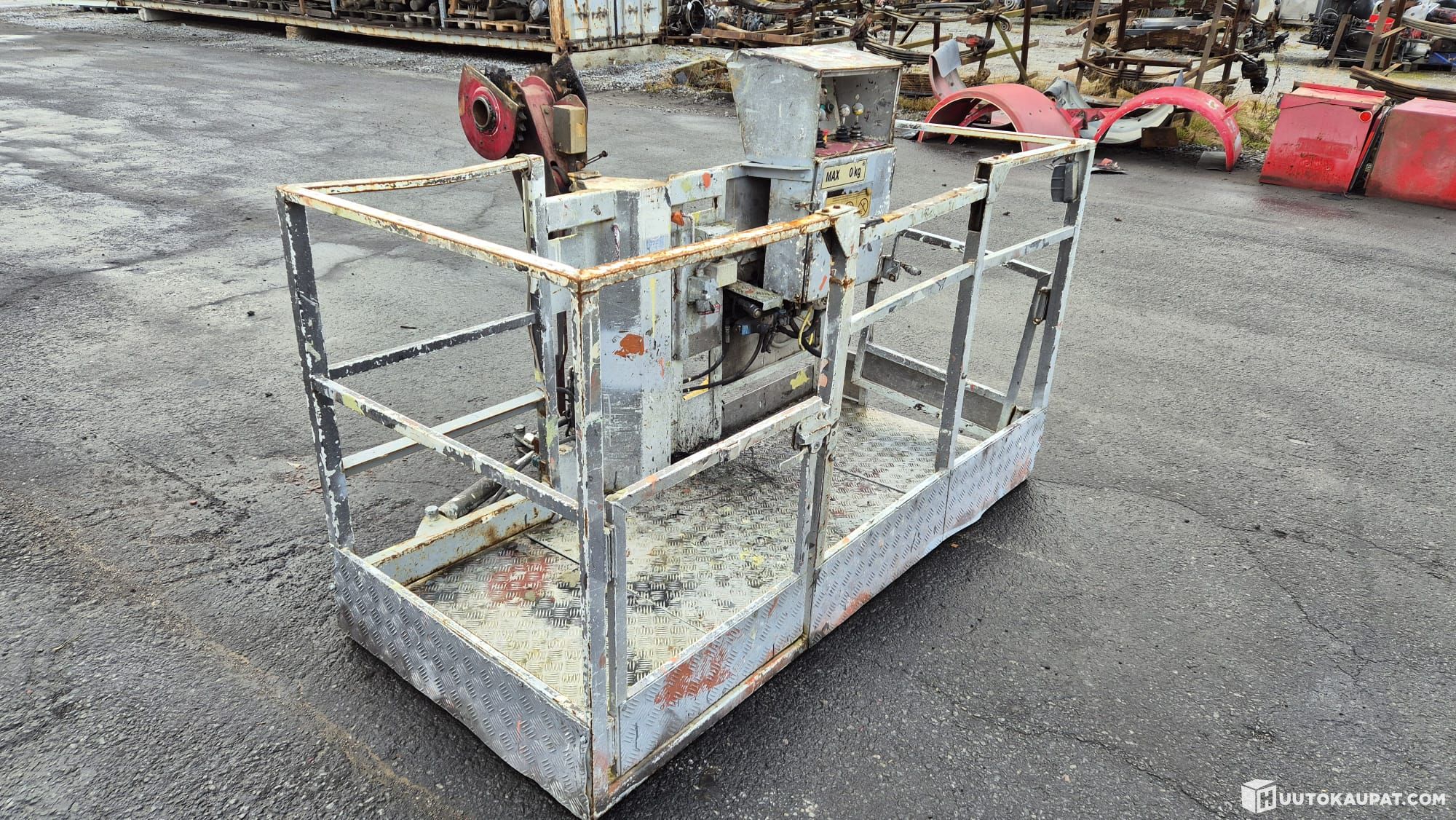 Leveys noin 2m. Korkeus noin 1.1m. Syvyys noin 0.9m. Henkilönostimesta irroitettu kori. Ei CE merkintää eikä mitään muutakaan hyväksyntää. Muutostyöt ja käyttö omalla vastuulla.