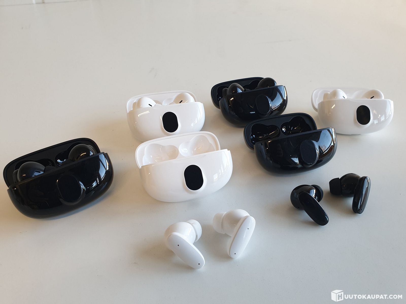 6 paria langattomia nappikuulokkeita latauskotelolla, kaksi eri väri: musta ja valkoinen, Isokyrö