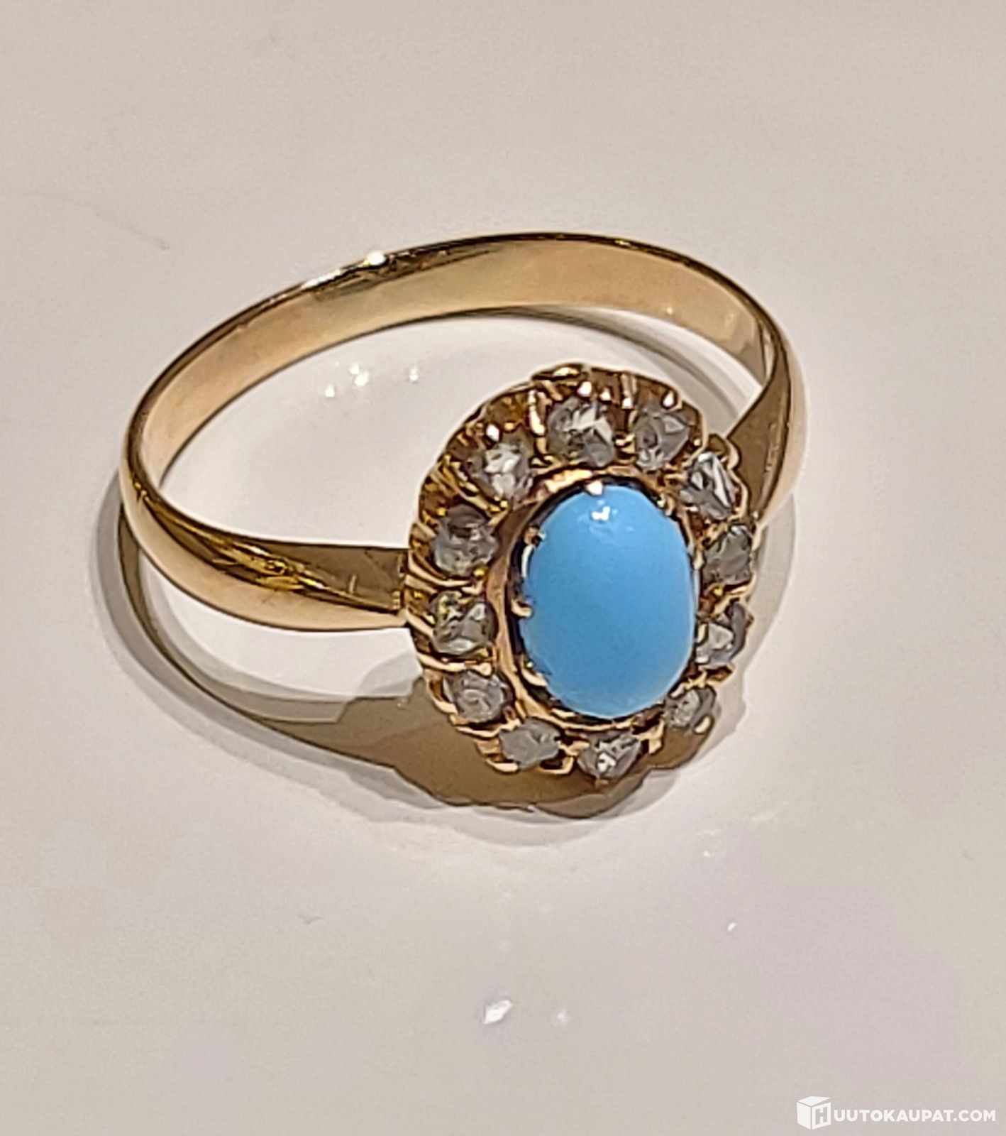 Kultainen timanttisormus, 12 timanttia, turkoosi kivi, Seinäjoki