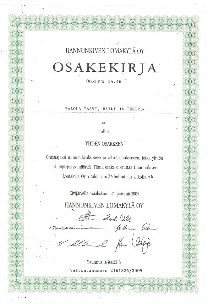 Hannunkiven viikko-osake yksittäisessä mökissä, Kivijärvi