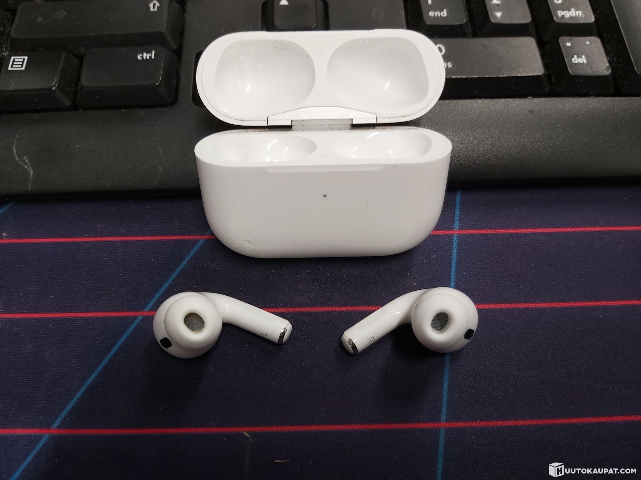 Käytetyt, mukana napit, latauskotelo ja laturi. Korvapehmusteet kokoa M