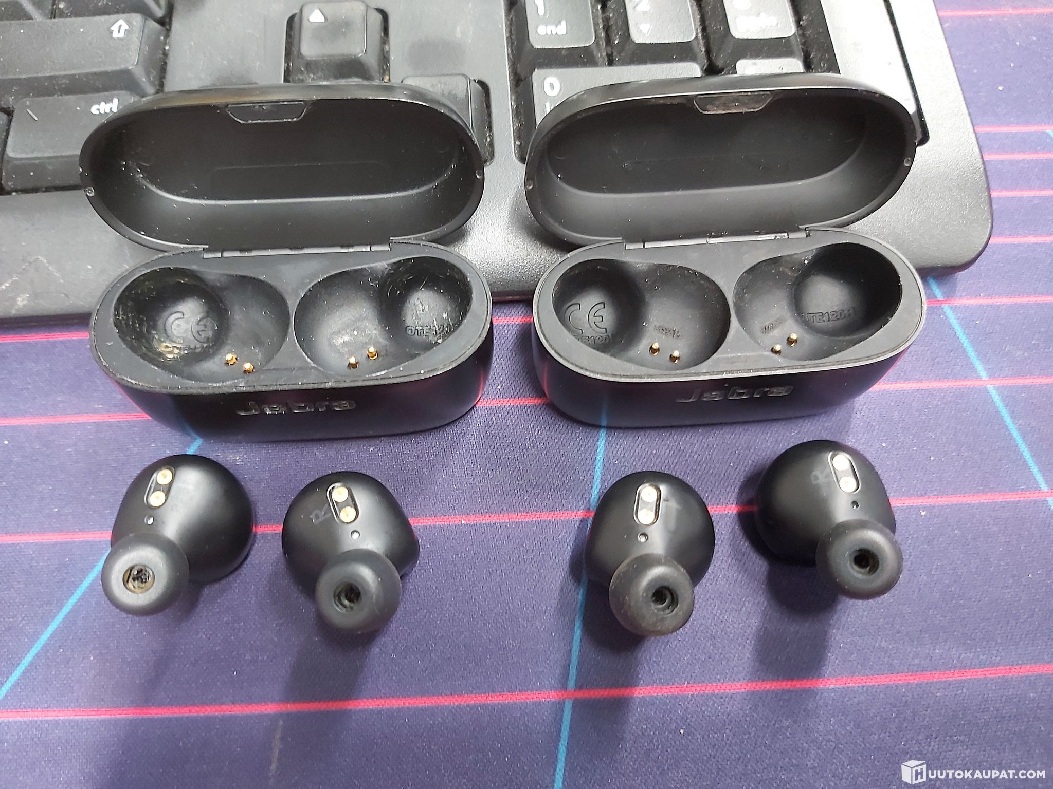 Käytettyjä. Mukana napit, latauskotelot ja laturit.