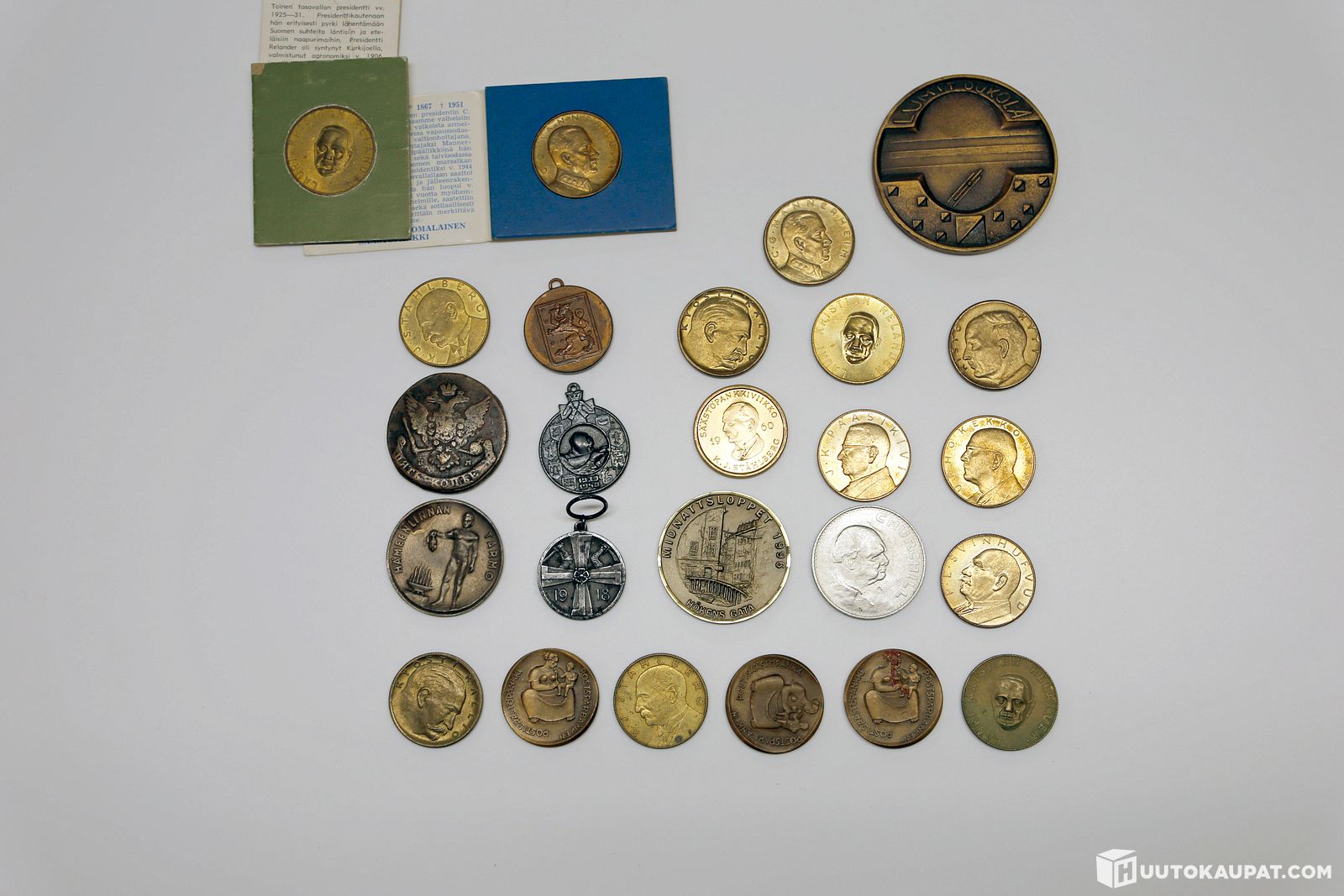 Mitaleita, militariaa(kunniamitaleja), vanhoja kolikoita (1700-luvun kopeekkakolikko). HKL1248, Hausjärvi