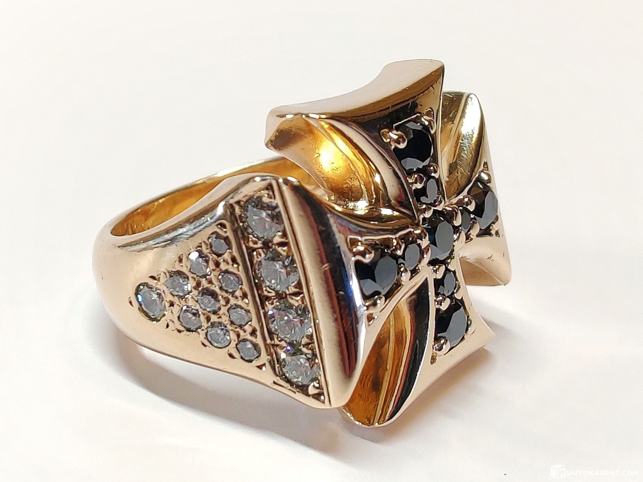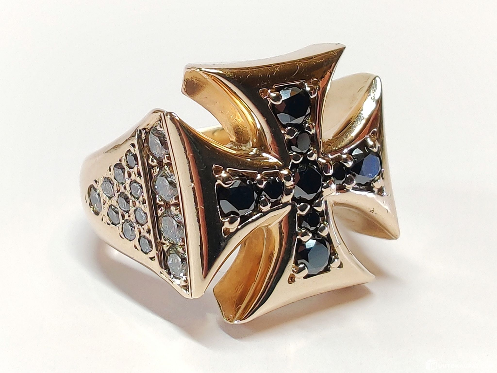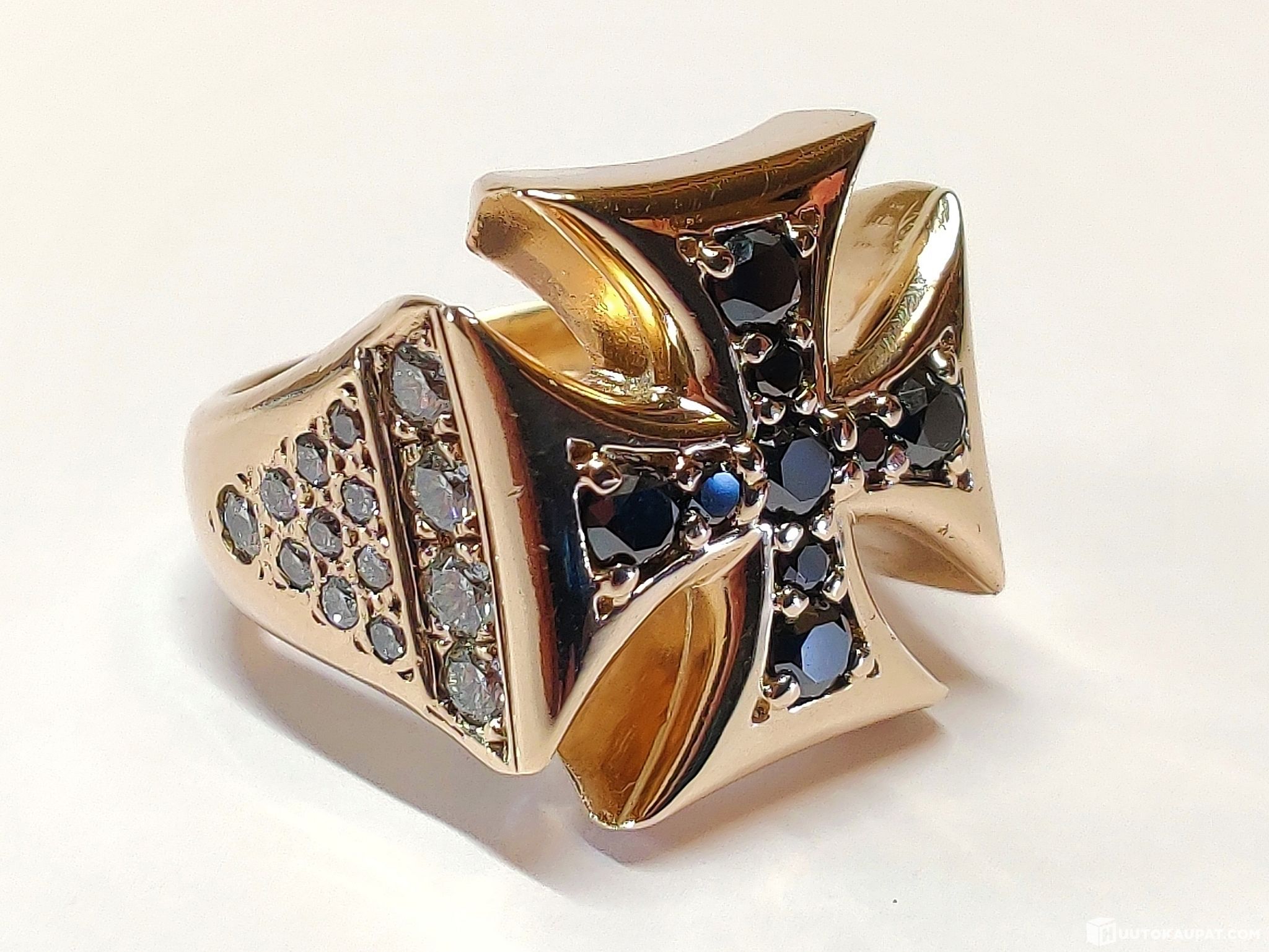 Todella näyttävä kotimaisena käsityönä valmistettu miesten Maltanristisormus timantein 1,9 karaatia, 585 14k kultaa.
