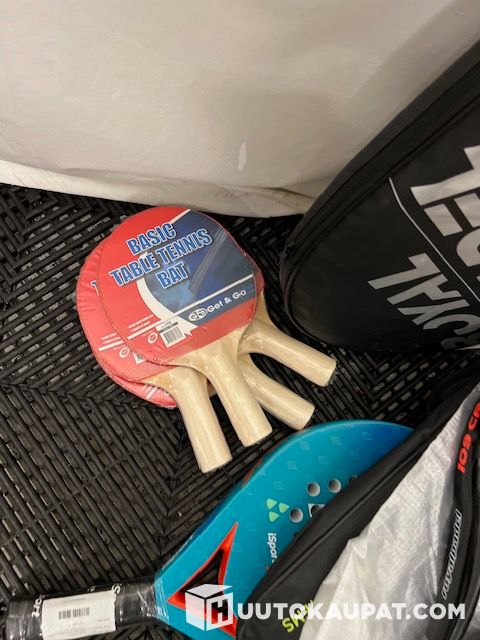 Huippuerä padel- ja pingissetti: Royal Padel -mailat pusseissa + lisämailat ja pingismailat. Tästä kerralla setti mökille, perheelle, taloyhtiön kerhohuoneeseen tai vaikka yrityksen henkilökuntapeleihin.
