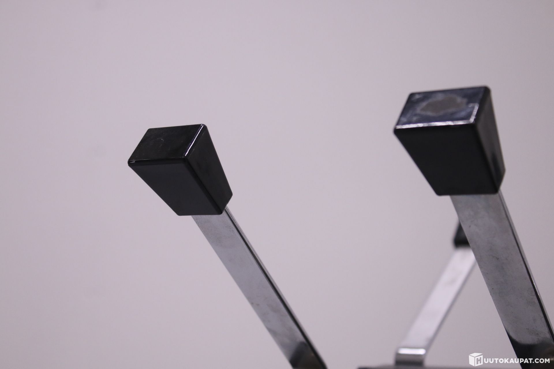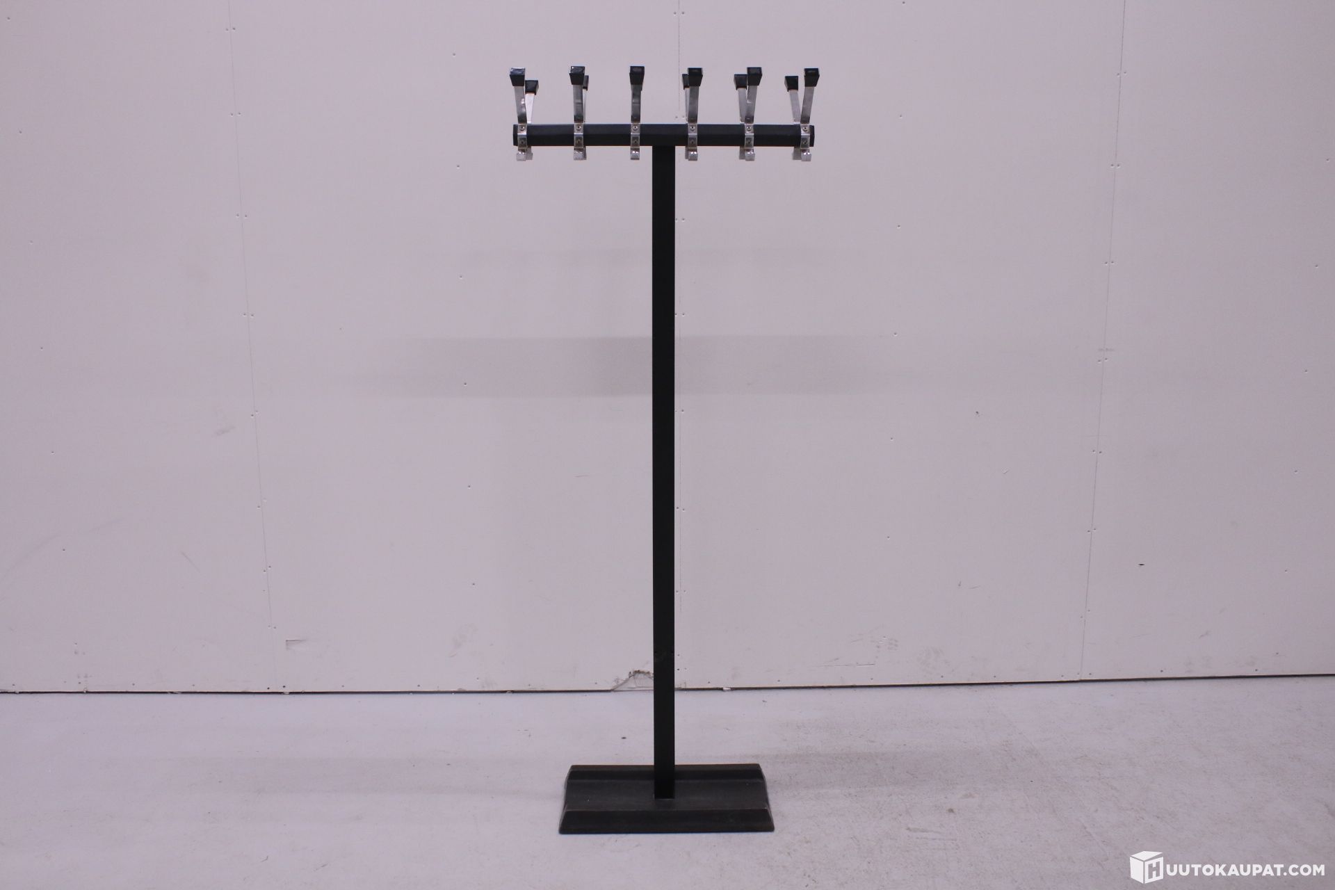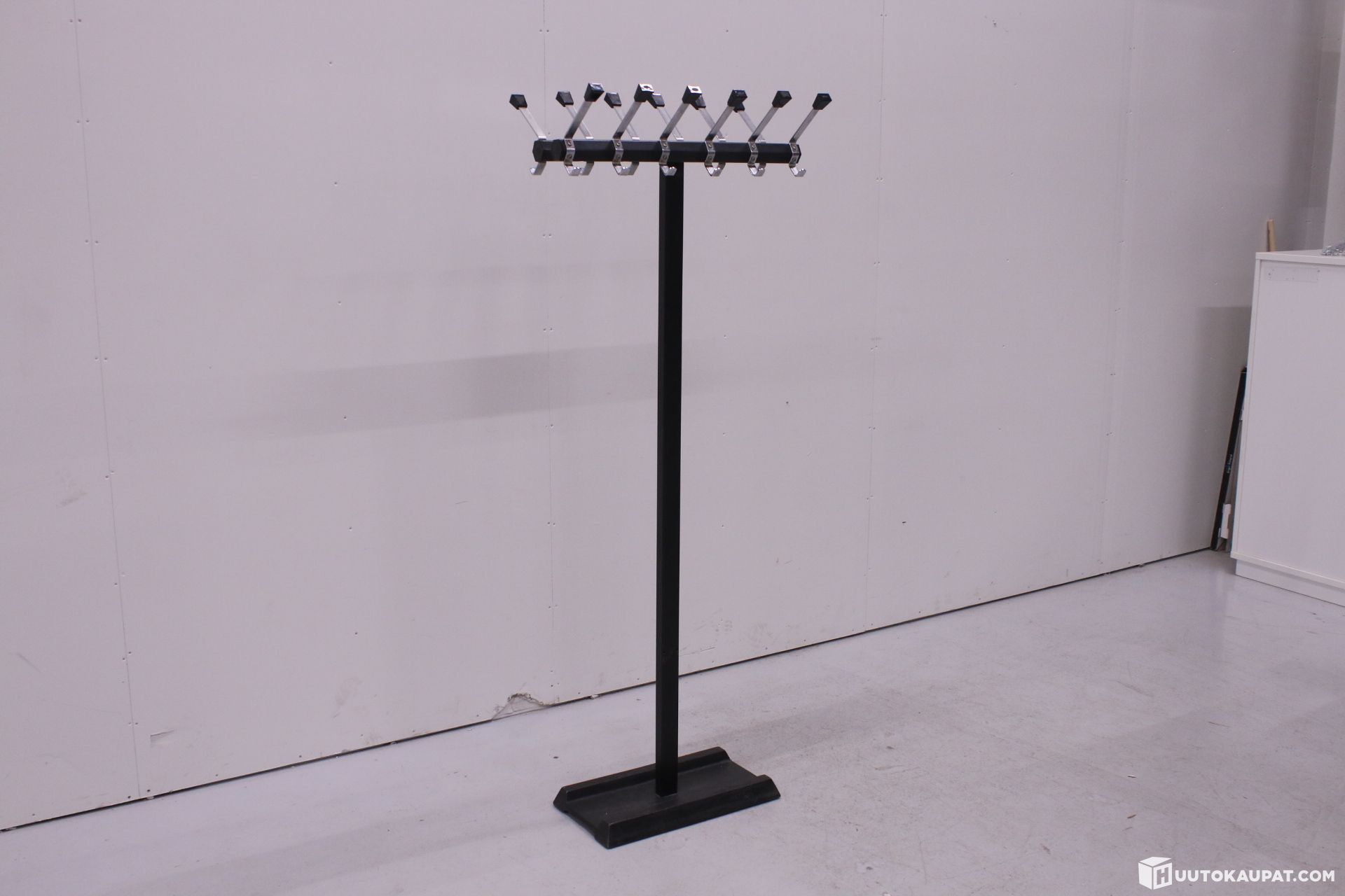 Raudasta valmistettu jalusta on painava ja tukeva. Koukut 12-naulakolle.