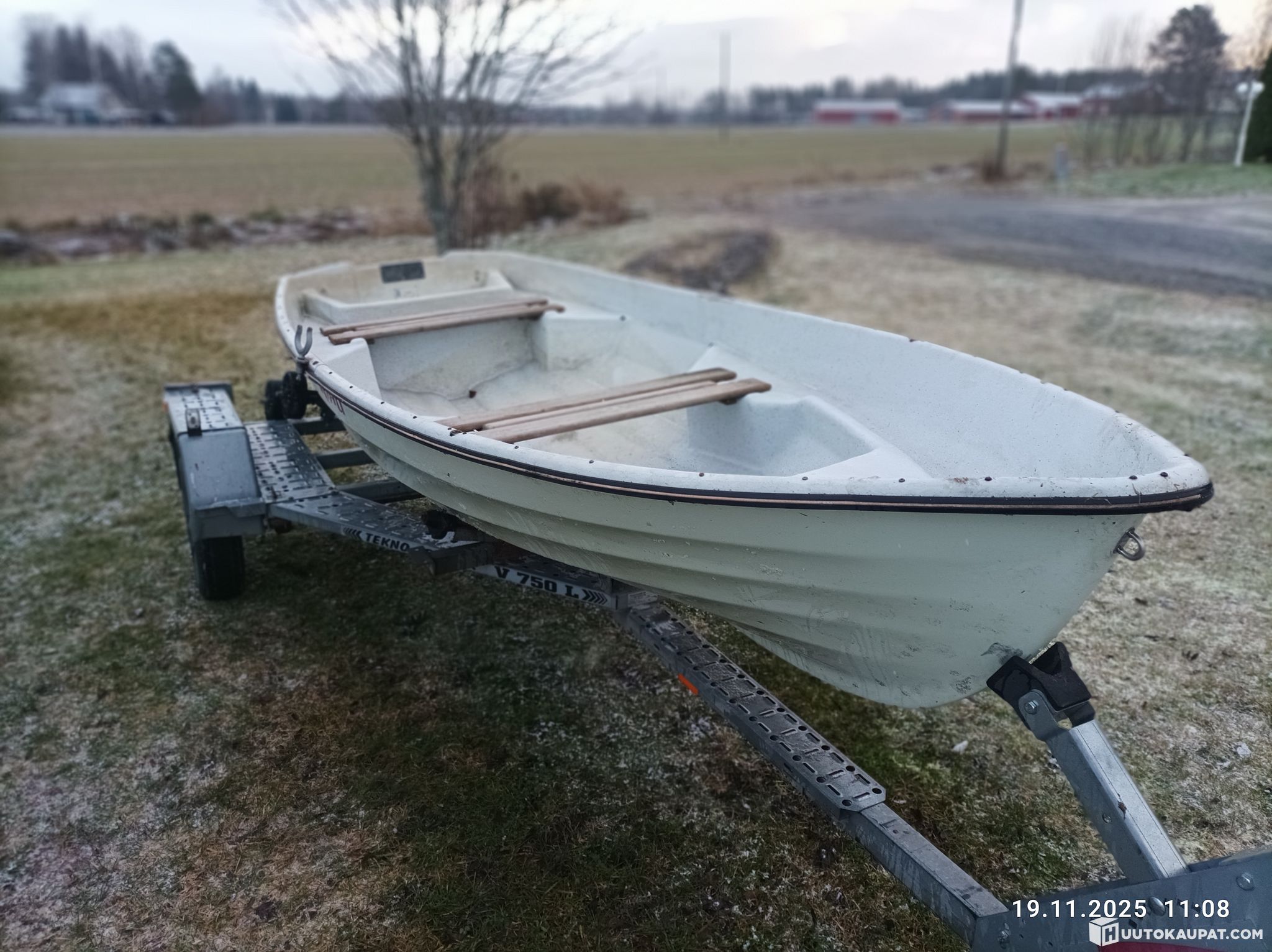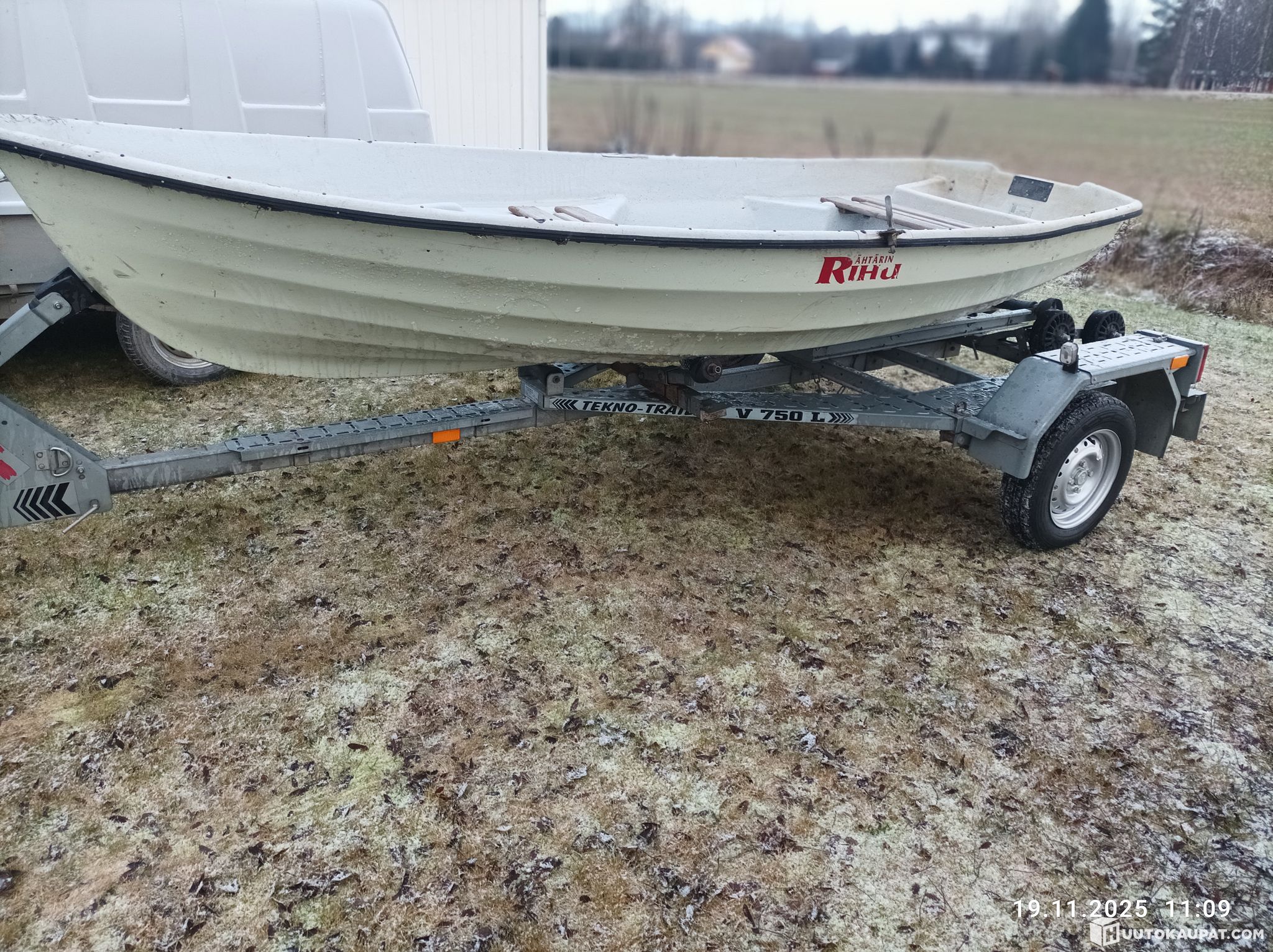 Tasaperäinen Rihu- merkkinen soutuvene. Pituus 3,75 m ja leveys 1,40 mm. Vene on ehjä eikä ole paikkailtu. Kölistä jonkun verran maali irronnut. Veneen laitareunan alle on asennettu muoviputki tukevoittamaan laitaa. Vene on hyvän mallinen, pohjaltaan leveä ja vakaa. Mukaan tulee käytetyt airot.