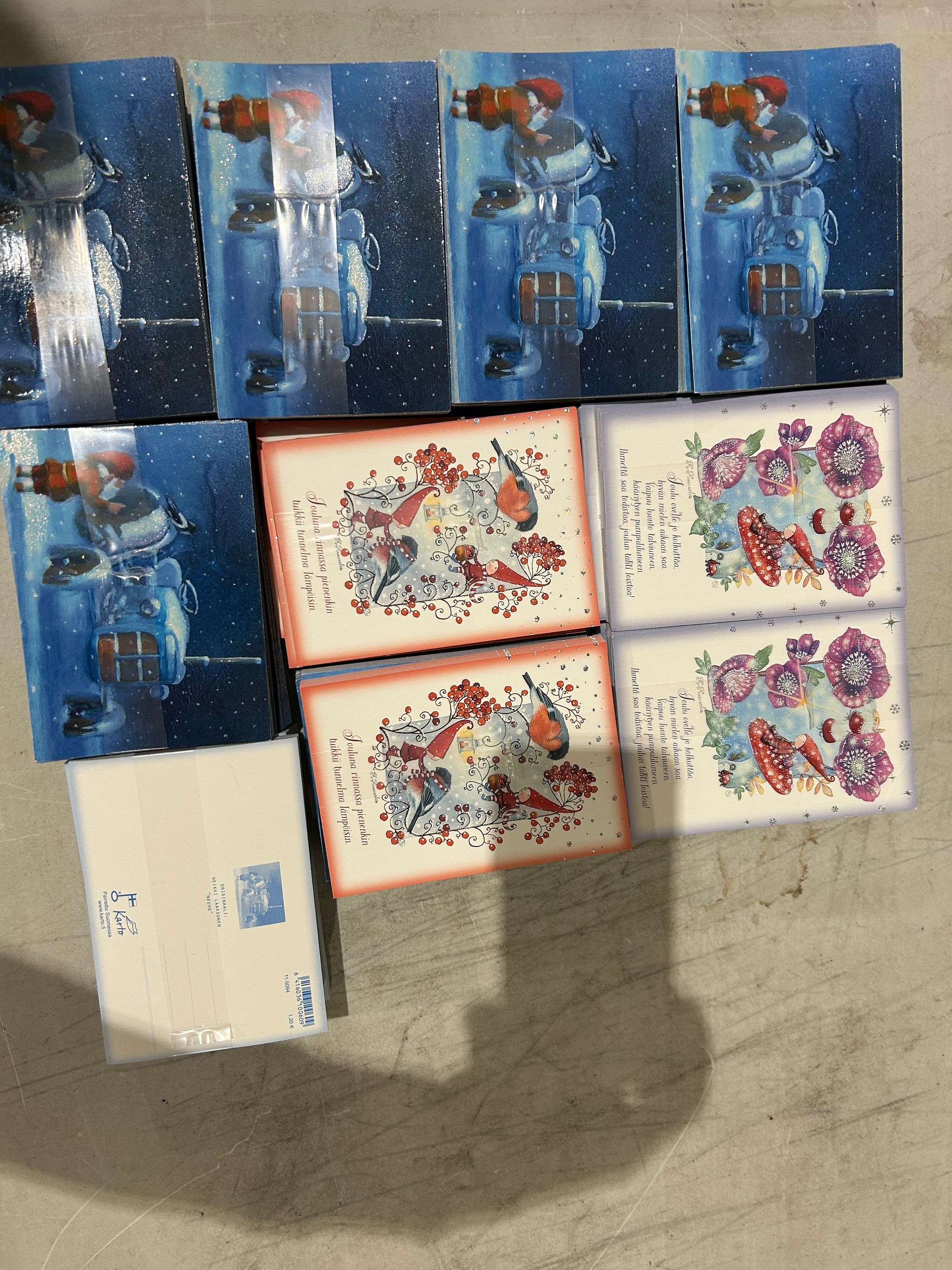 1000kpl poistoerä 1-osaisia Joulukortteja Lajitelmana sh.1100,00€, Mikkeli