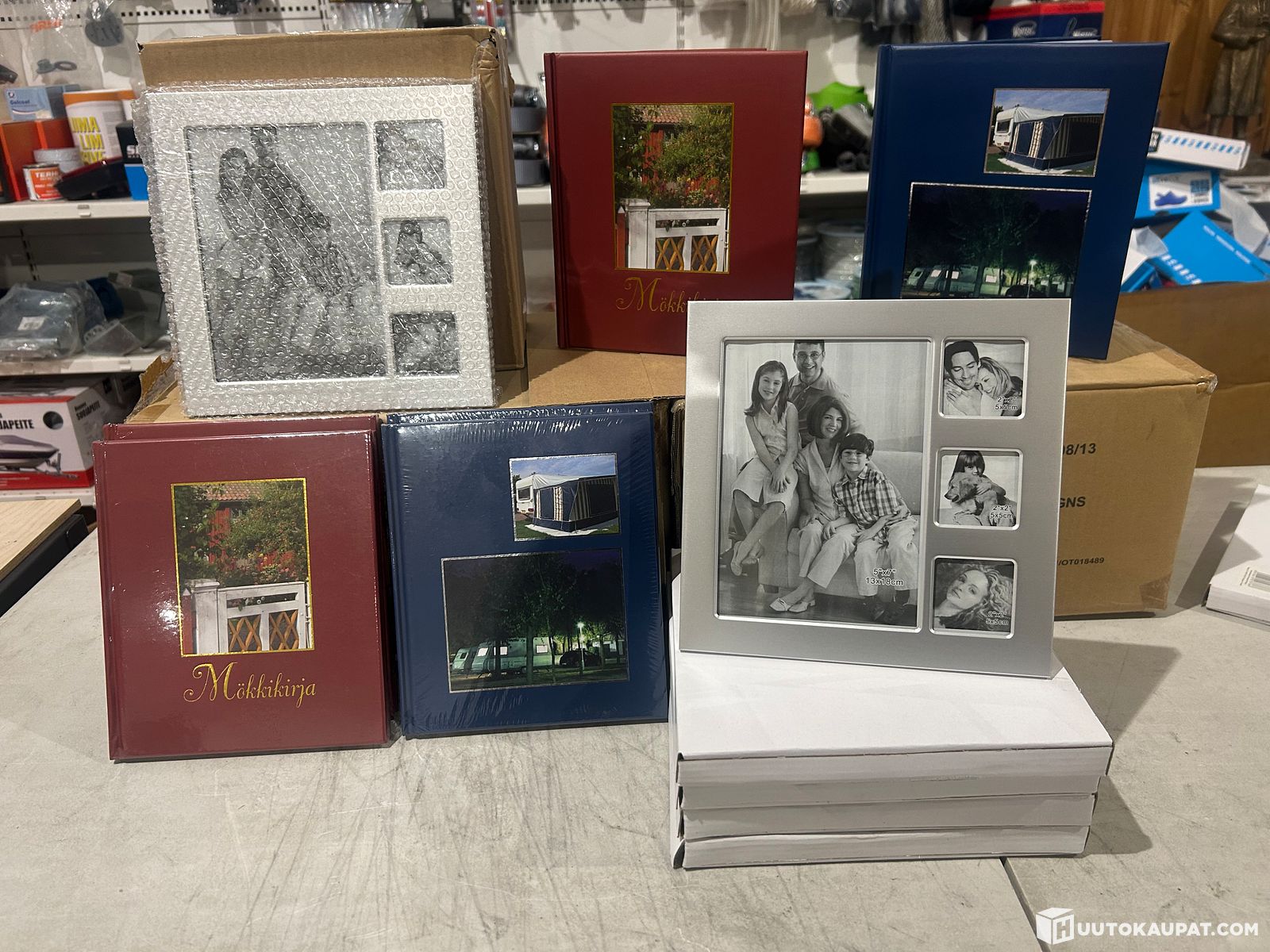 96 kpl tukkuerä Mökkikirjoja A5 + Valokuvakehys 4-kuvan hopea metalli erän sh.899,00e, Mikkeli