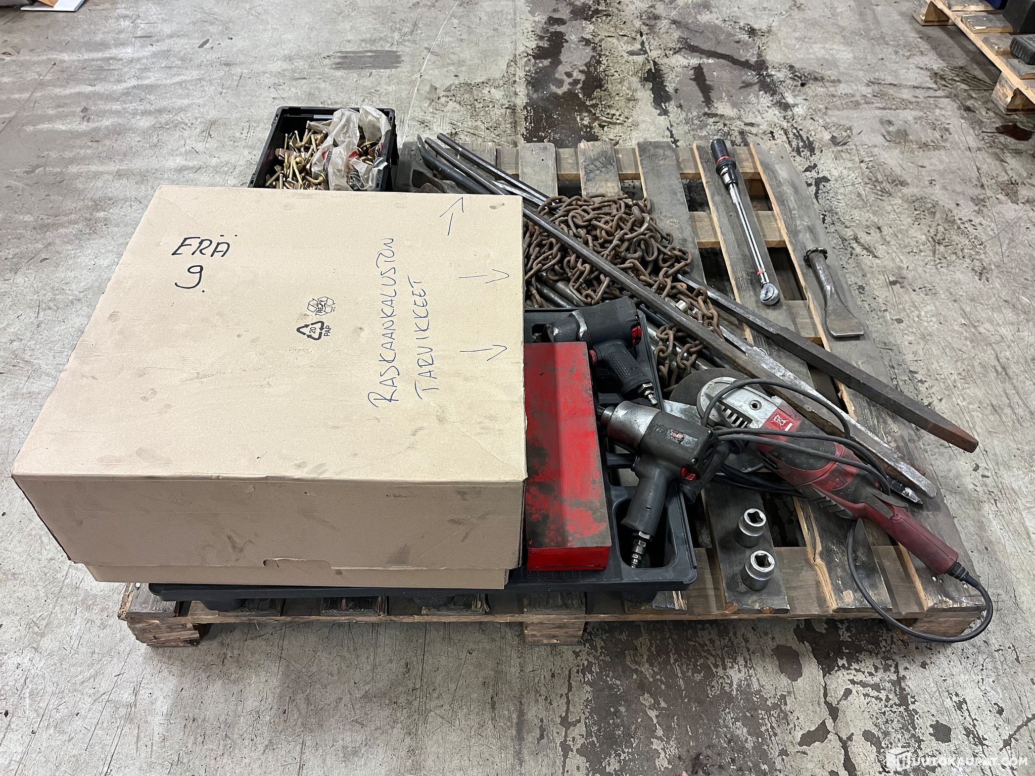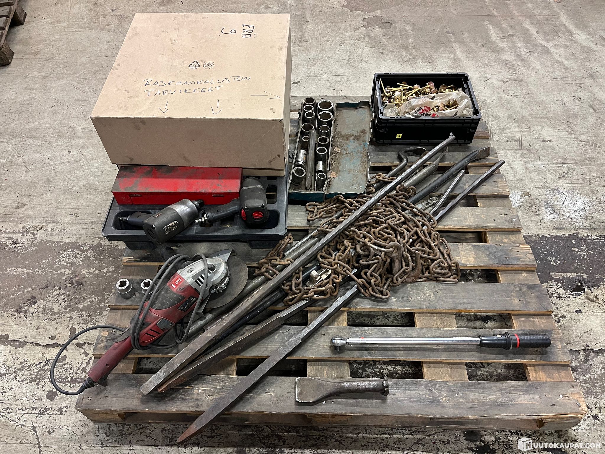 Työkalujen kunnosta ei ole tarkempaa tietoa joten myydään korjattavaksi siinä kunnossa kuin myyntihetkellä ovat