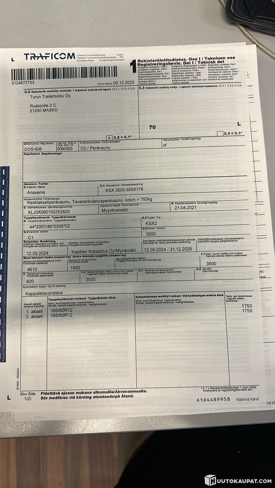 Turun Trailertukku Oy ilmoittaa, Huutokaupat.com myy