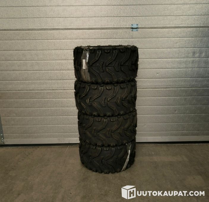 Neljä kappaletta ATV-renkaita.