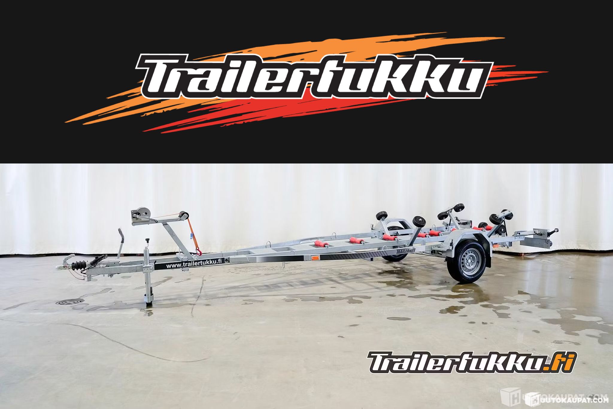 Trailermate 1 900 kg (691 x 210 cm) PRO venetraileri on erinomainen valinta veneesi kuljetukseen. Traileri on suunniteltu kestämään kovia sääolosuhteita ja pitkäaikaista käyttöä ilman, että sen suorituskyky heikkenee. Lisäksi traileri on varustettu laadukkailla jarruilla ja valoilla, jotka tekevät sen käytöstä turvallisen ja helpon. Trailermate venetraileri on valmistettu korkealaatuisista materiaaleista, jotka takaavat sen kestävyyden ja luotettavuuden. Trailermate venetrailerin runko on valmistettu galvanoidusta teräksestä (umpiputkea), joka suojaa traileria ruosteelta ja takaa sen kestävyyden vuosiksi eteenpäin. 1-akselinen venetraileri takaa varman vakauden ja sen kantavuus on jopa 1 464 kg. Traileri soveltuu monen kokoisille veneille, sillä sen ulkomitat ovat 691 x 210 cm. Trailermate venetraileri on loistava investointi veneesi turvallisuuden ja kuljetuksen helpottamiseksi