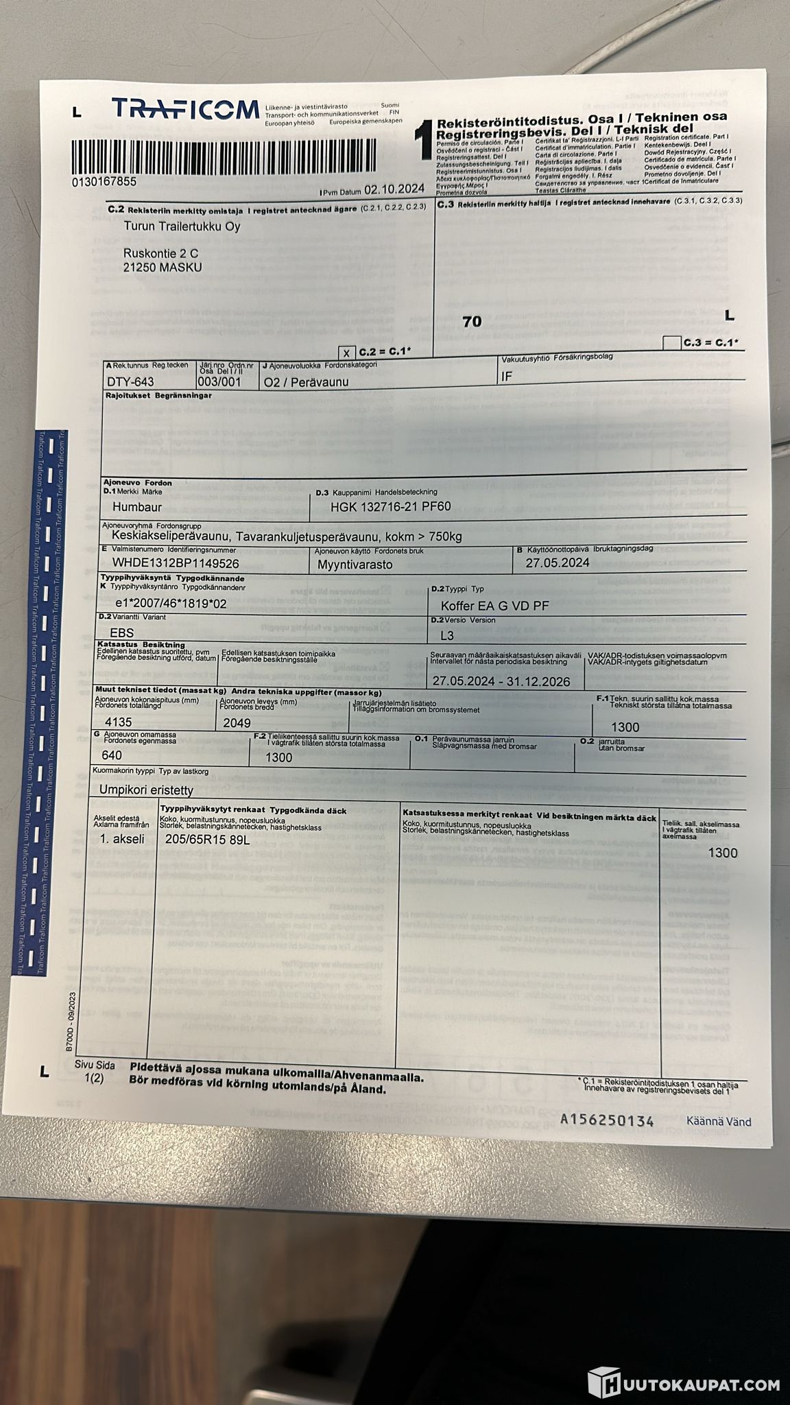 Turun Trailertukku Oy ilmoittaa, Huutokaupat.com myy