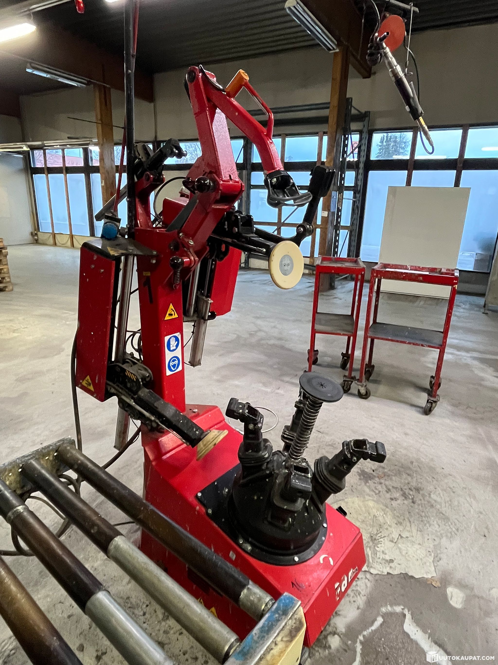Kone on ollut renkaiden ensiasentamon käytössä, ollut viimeiset vuodet vähällä käytöllä mutta on toimiva kone suoraan asennuslinjasta.